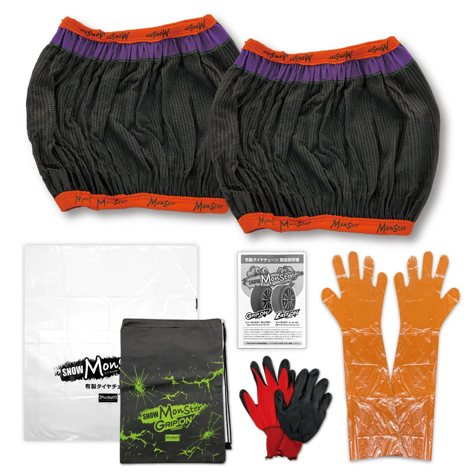 急な積雪時に即対応できる、布製のタイヤチェーンです。