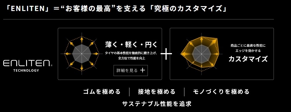 ≪ENLITEN≫技術搭載でタイヤ性能をグッと引き上げ、タイヤの用途に応じてカスタマイズ。