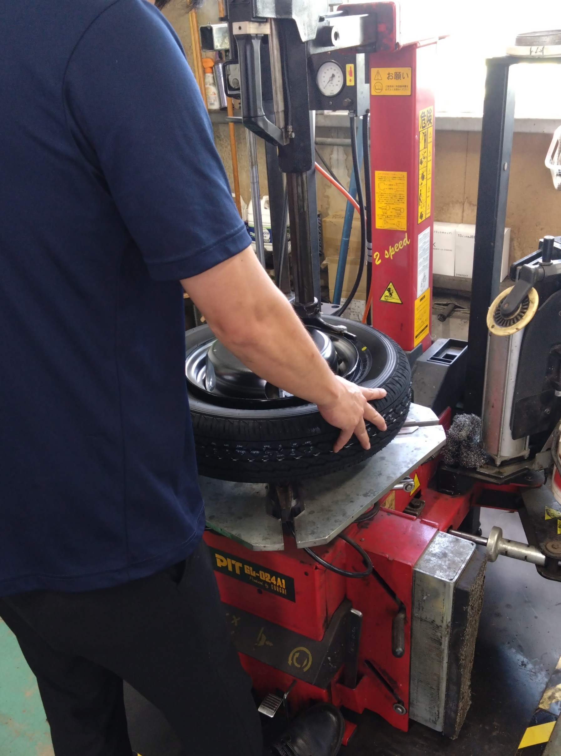 当店ではスポットクーラー等熱中症対策をしながらタイヤ交換をしています。