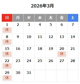 阿南店 3月営業カレンダー
