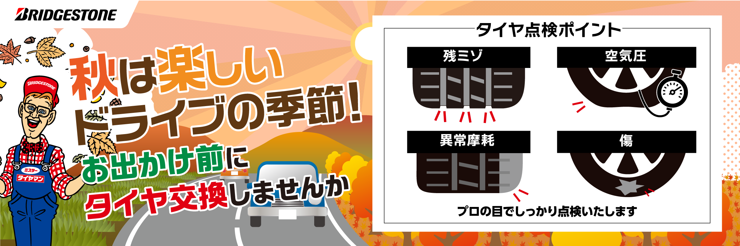 秋の行楽シーズン、遠出の前にタイヤ点検はいかがでしょうか?