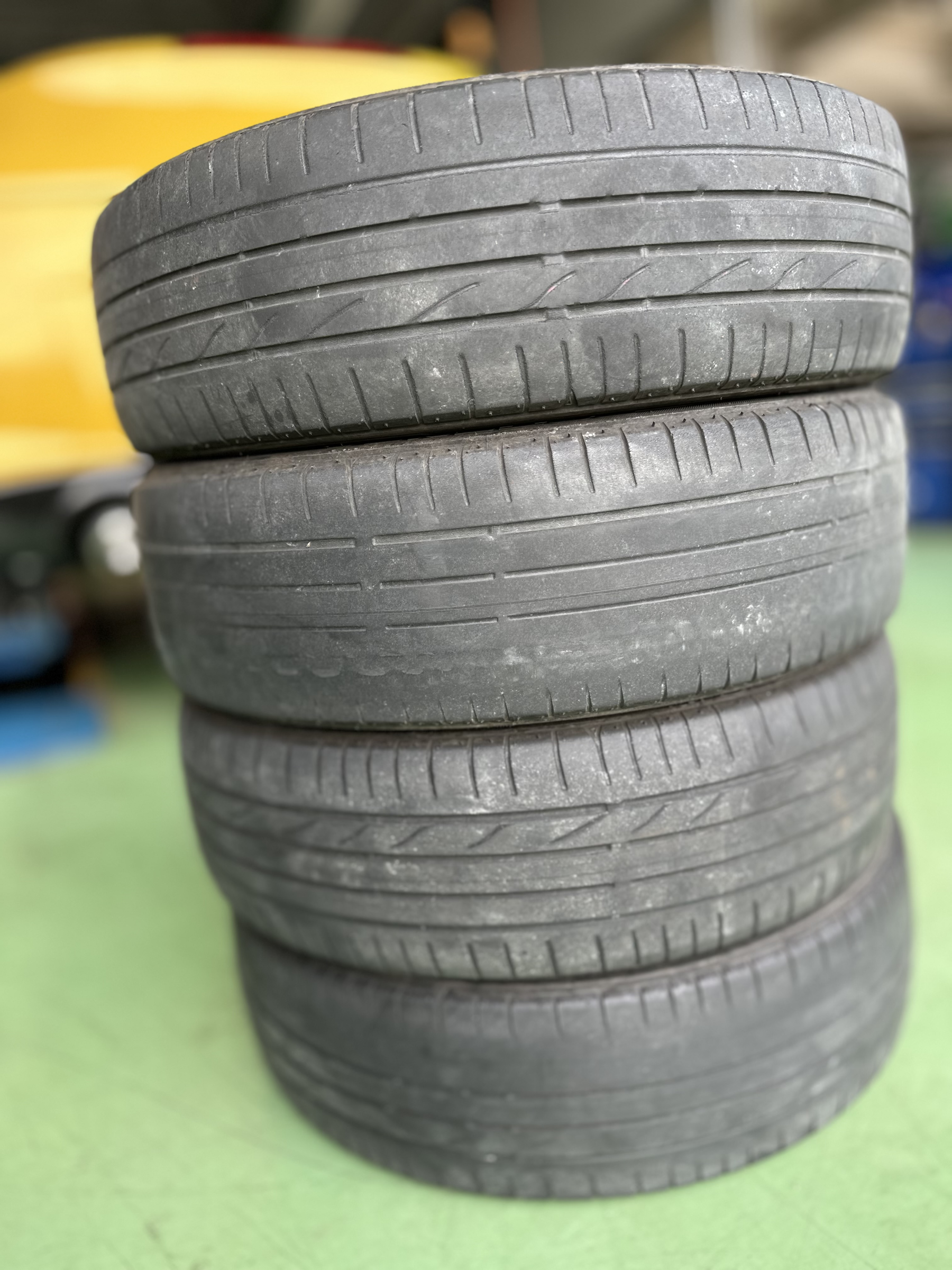 装着されていたタイヤはすべて残溝がスリップサインまで到達しており、特にフロントタイヤの2本はバースト寸前の非常に危険な状態でした…