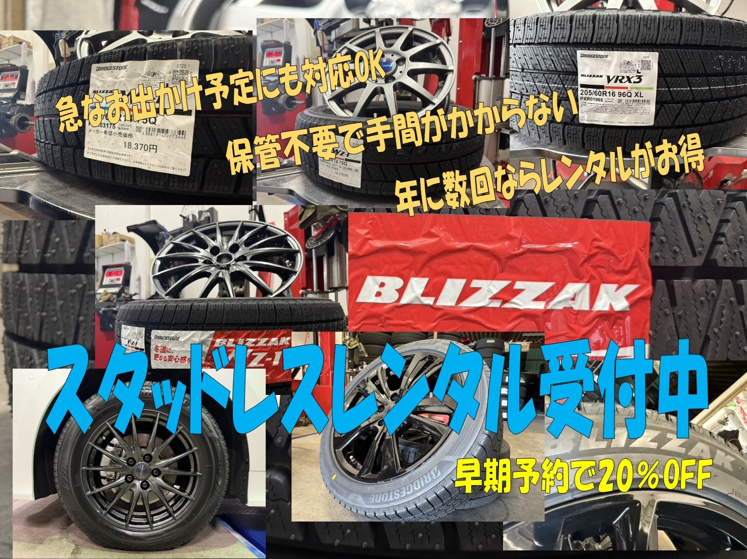 今年もスタッドレスレンタルのご予約を受け付けております。 様々な物価高騰でスタッドレスタイヤの価格も値上がりしております、年に数回の使用ならスタッドレスレンタルは如何でしょうか?