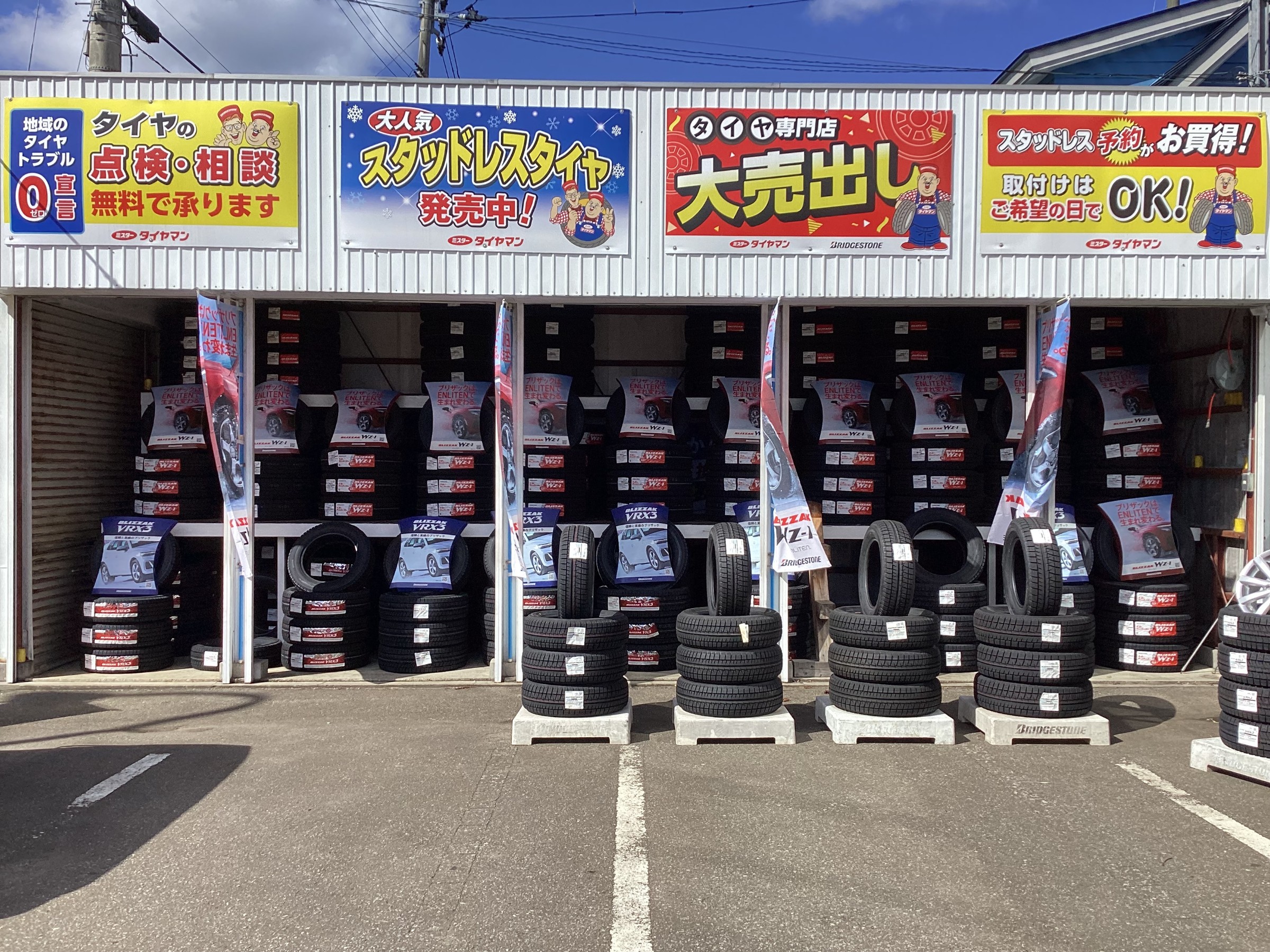 外の展示スペースの夏タイヤもスタッドレスに入れ替え。
