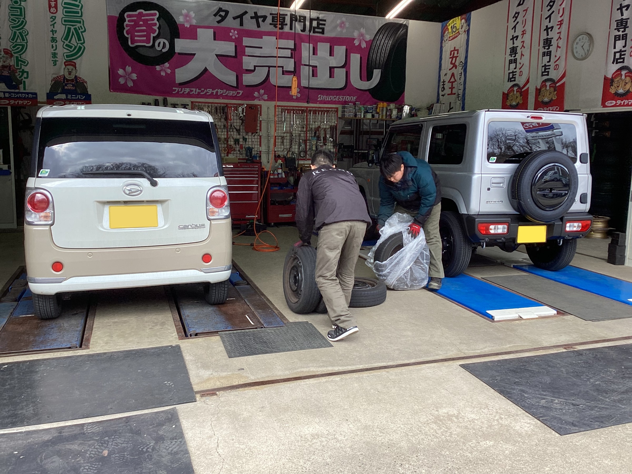 ほかタイヤの履き替え(ホイール付き)作業も承っております。