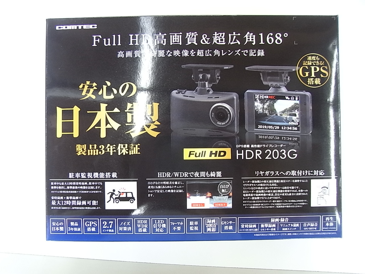 今回はコムテックの1カメラタイプ HDR203Gを取り付けしました!