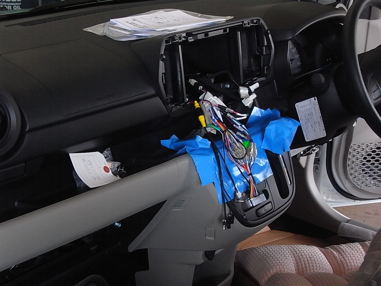 ダイハツベースの車両なので、内装パネルが取り外せず配線を通すのが一苦労でした(*_*;