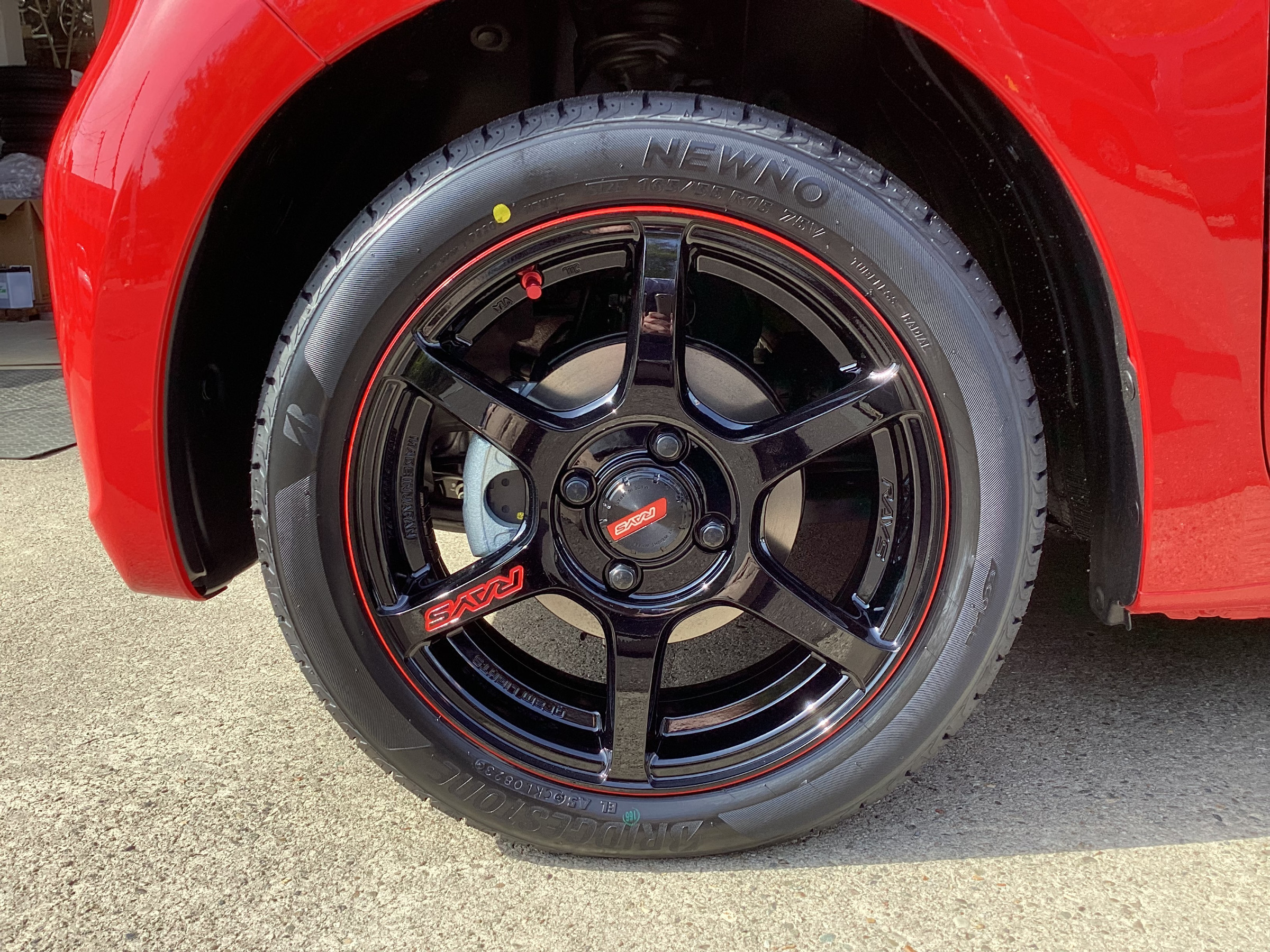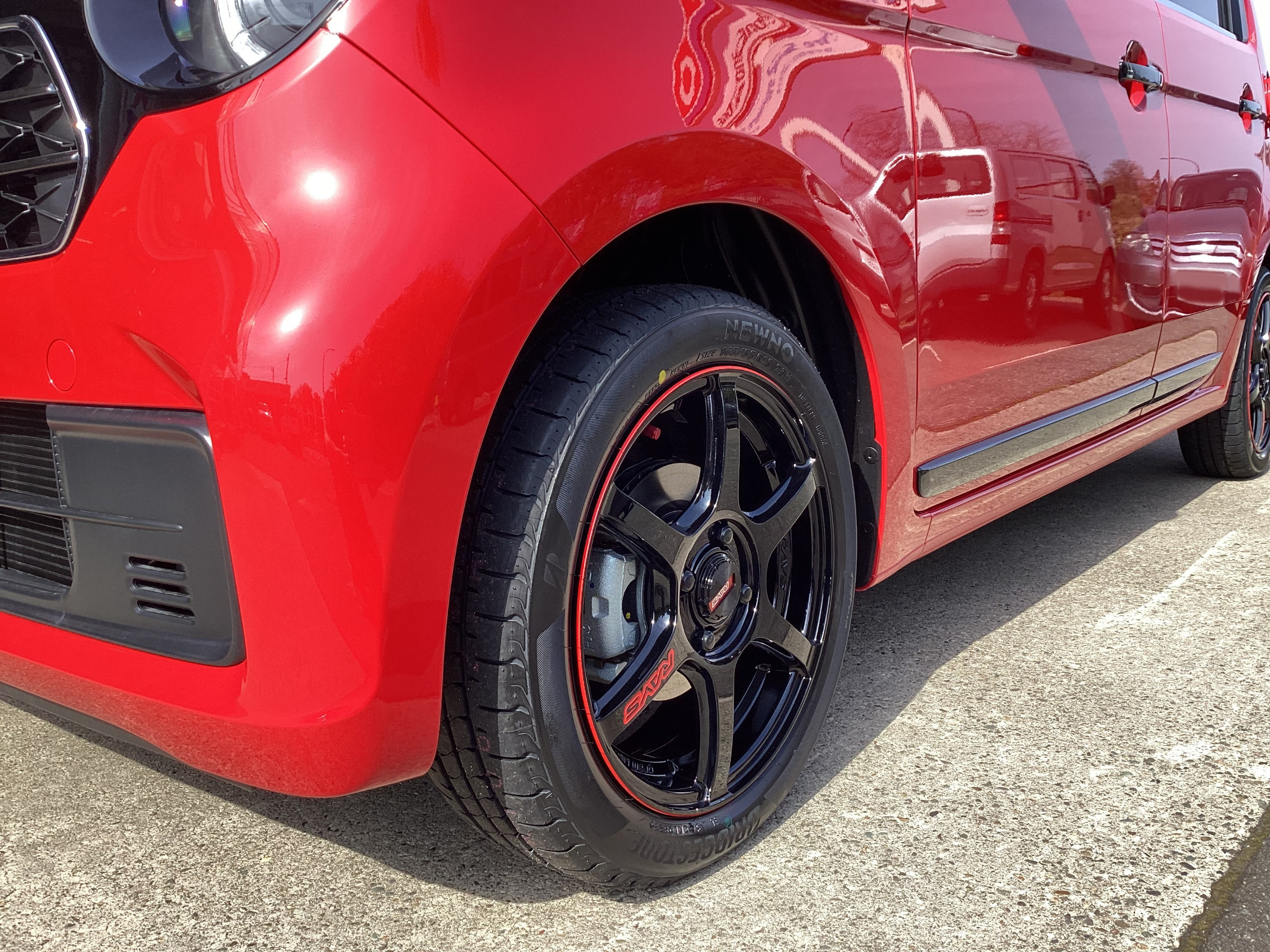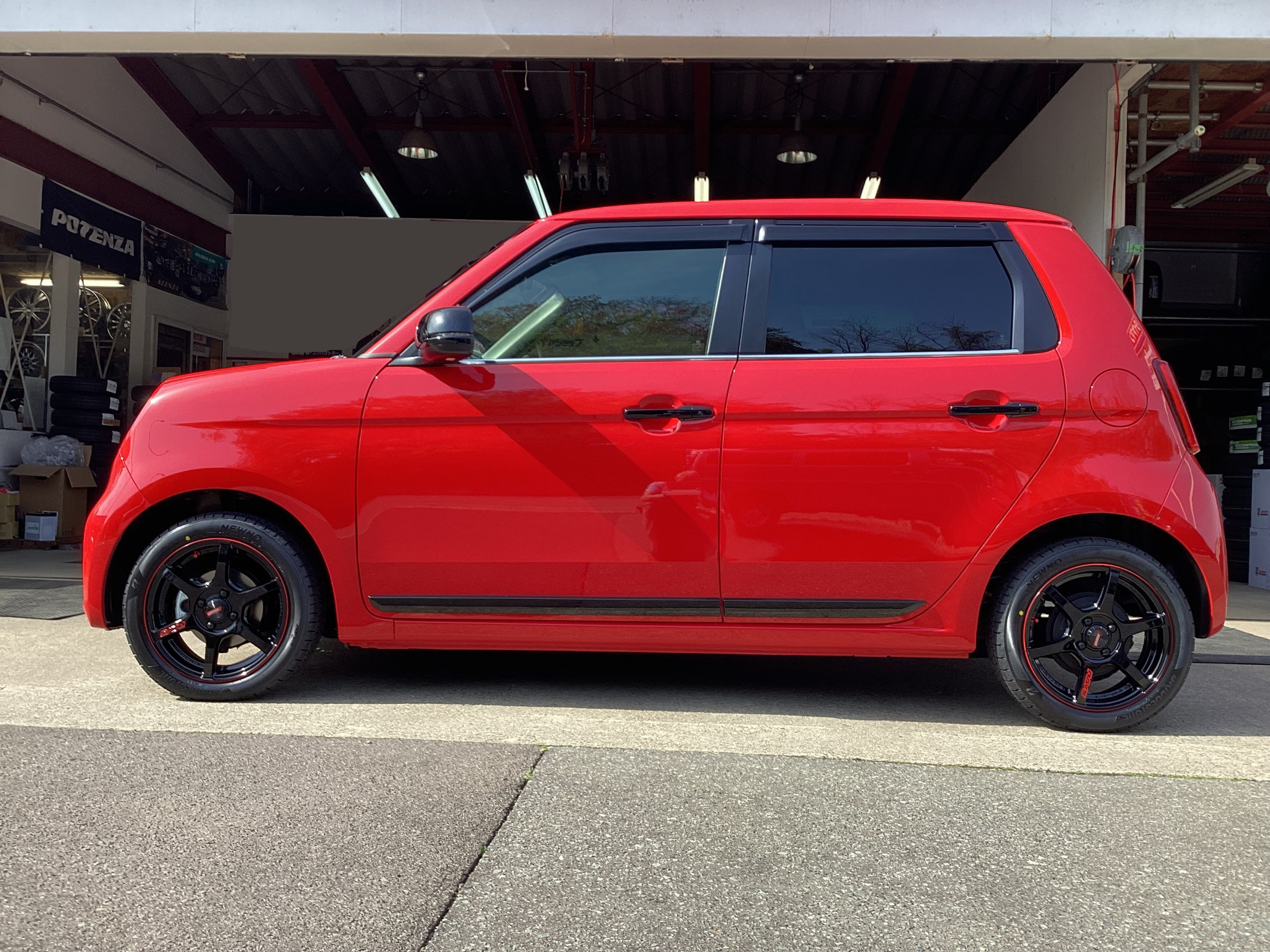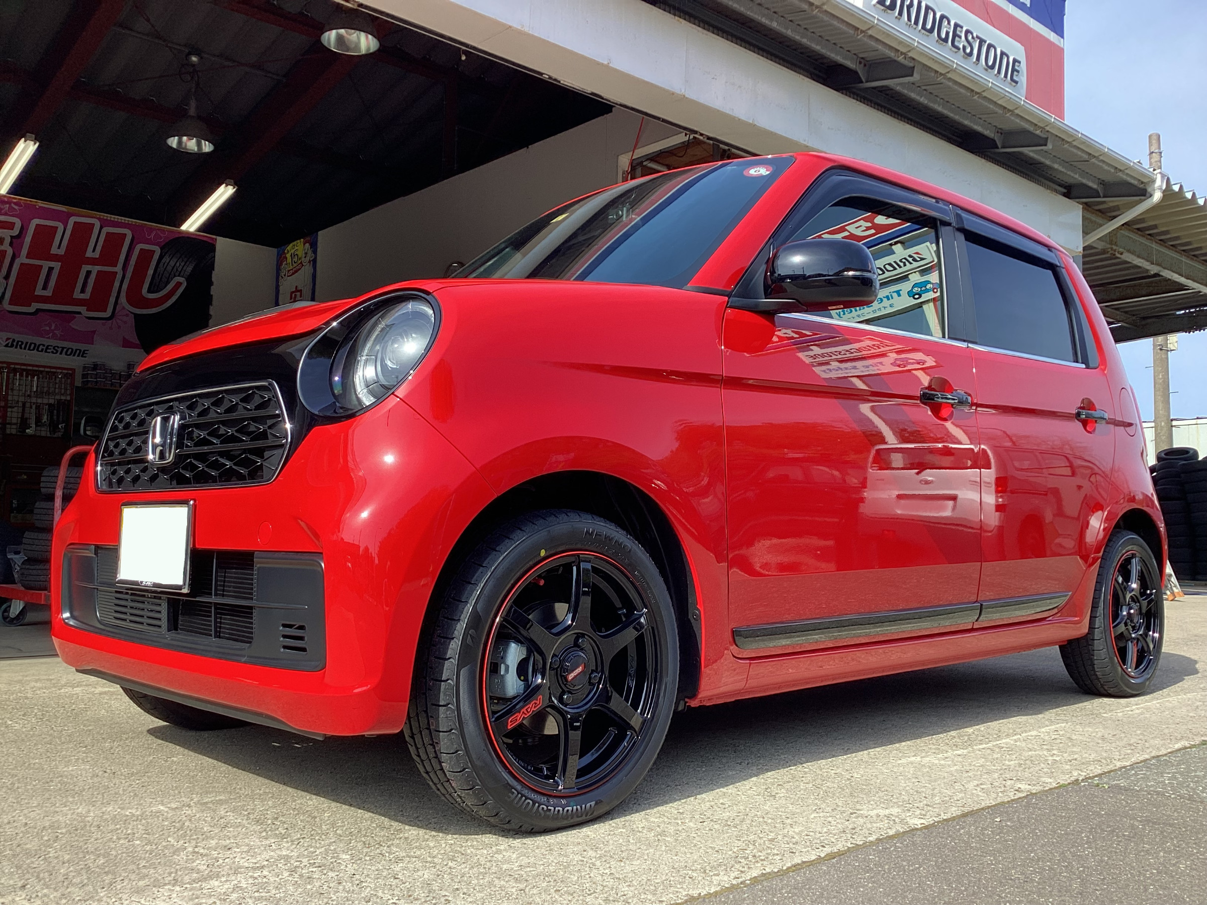真っ赤なN-ONEに RAYS グラムライツ57C6とブリヂストンNEWNOのホイールセットを装着しました。