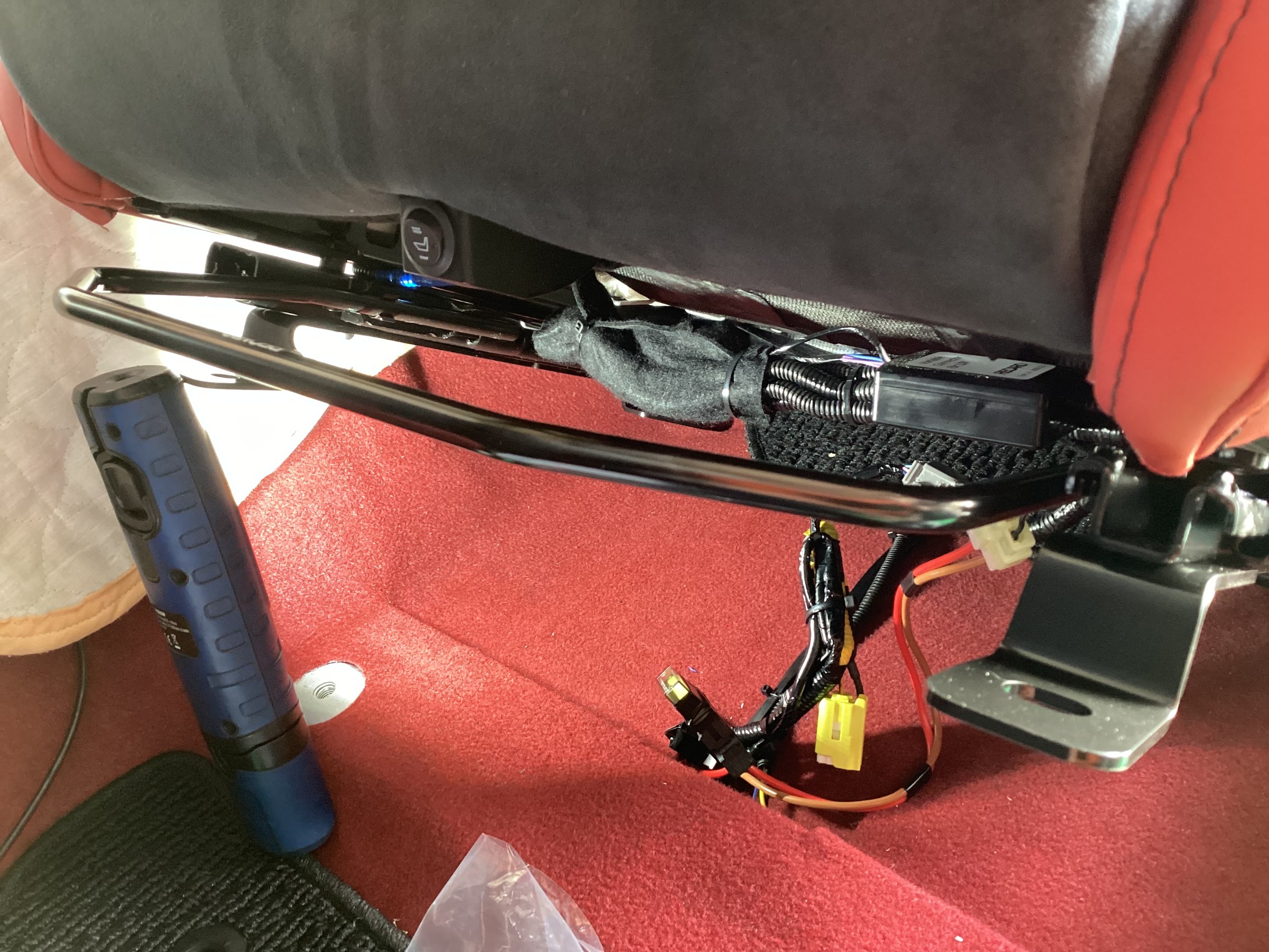コピーが終わったRECAROのユニットを純正シートの配線と一緒に今回取り付けるシートに移設しました。