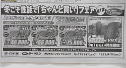 スタッドレスタイヤの売り出し広告を、本日の新聞に載せております! 8月24日(木)から8月31日(木)迄の期間、ICE PARTNER、REVO GZの