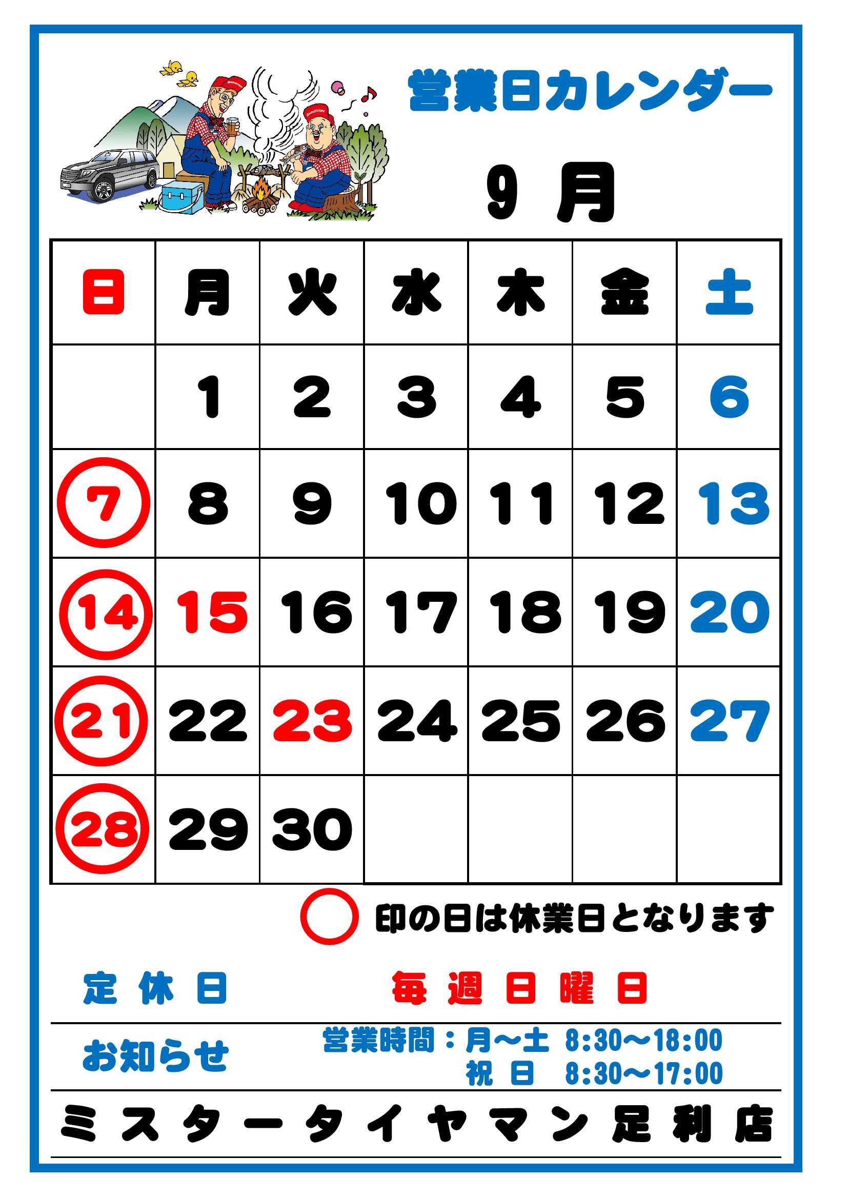 9月の営業日のお知らせ 2025年8月27日 皆様こんにちは。 いつも当店をご利用頂きありがとうございます。 9月の営業日をお知らせいたします。 毎週日曜日を定休日とさせて頂きます。 よろしくお願いいたします。