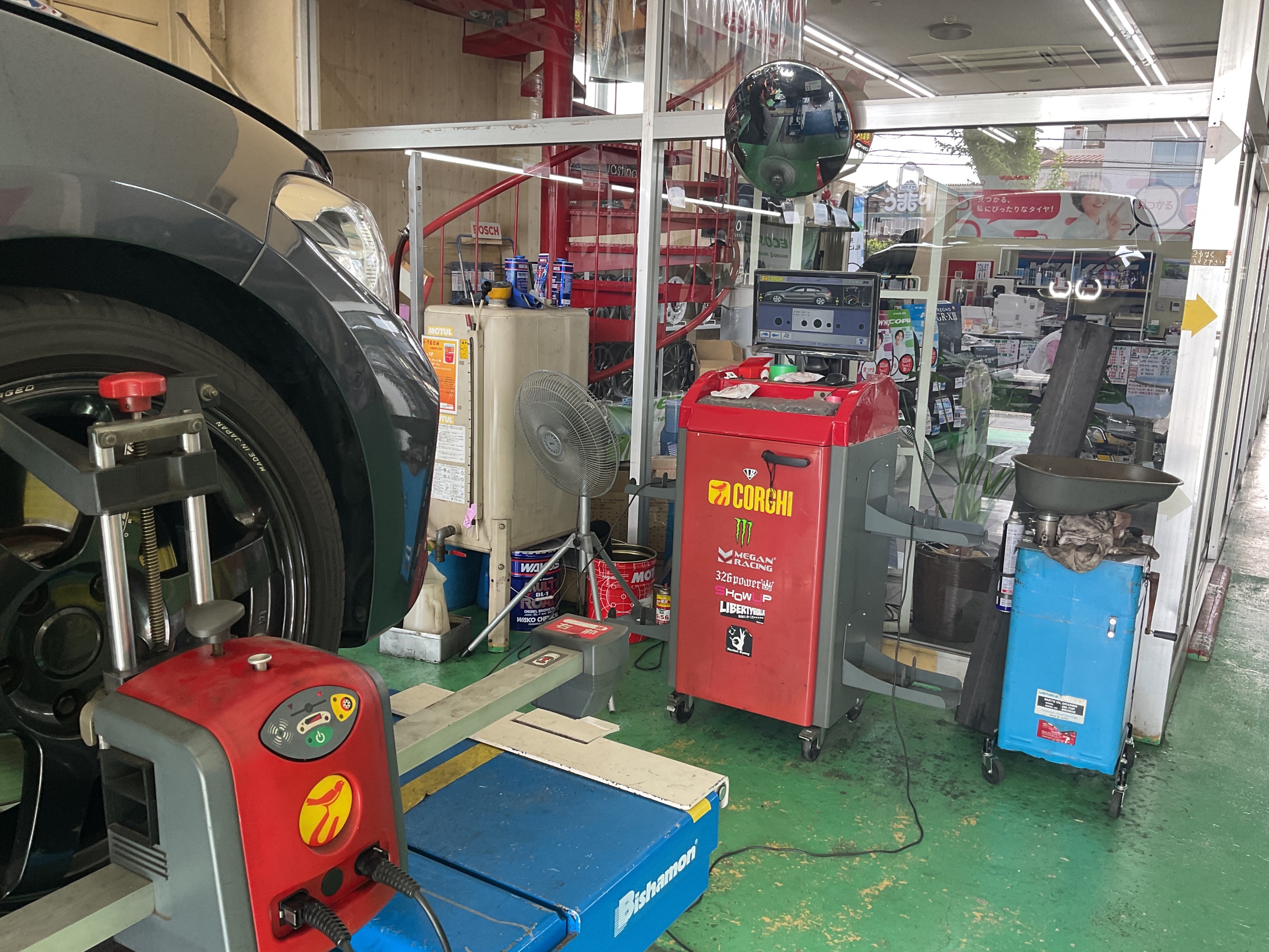当店ミスタータイヤマンダイモツでもアライメント測定・調整を行なっていますのでお気軽にお立ち寄りください。