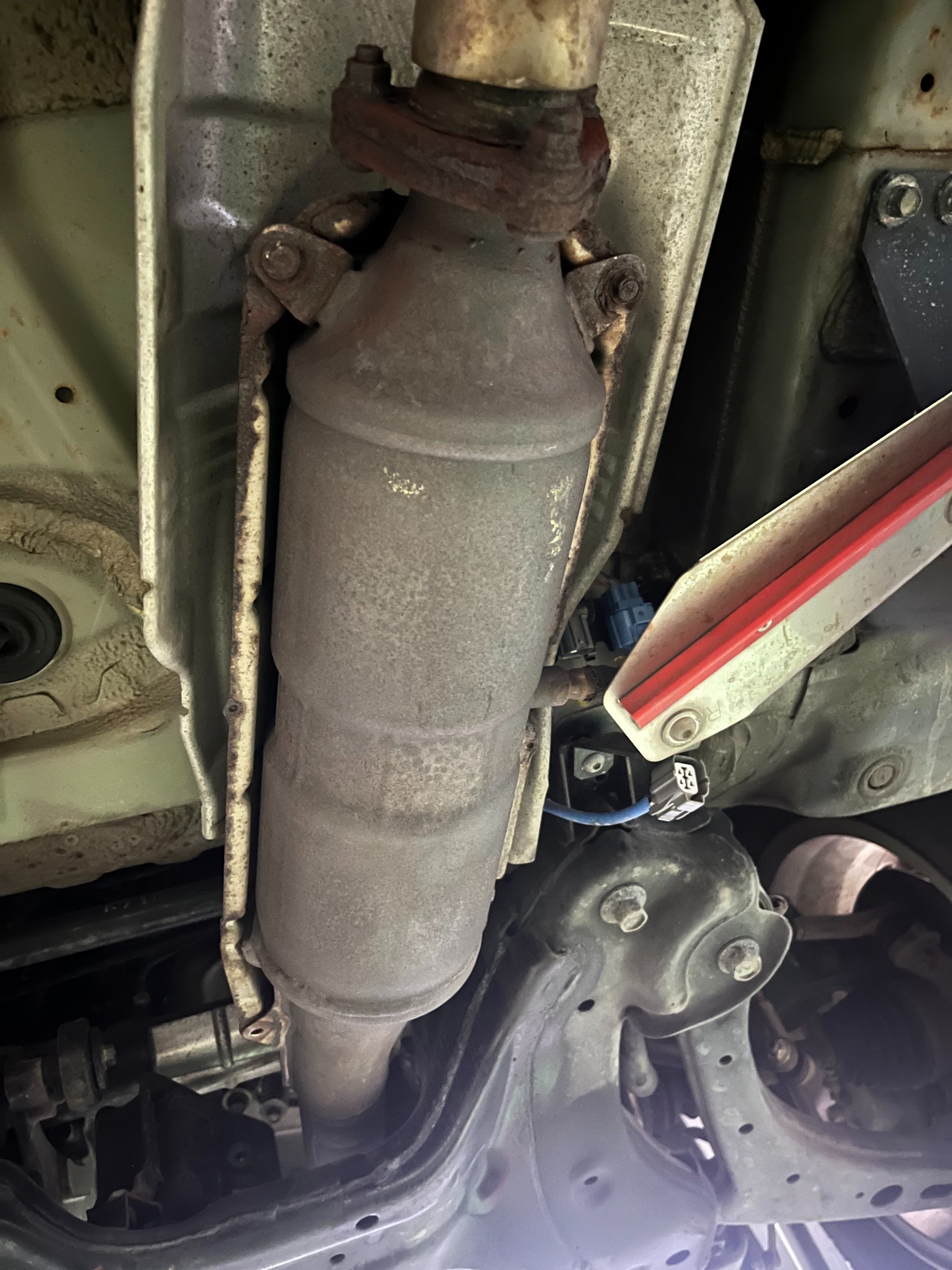 アイドリング時にカラカラ音がしていたので、まずはリフトで上げて下回りをチェック!