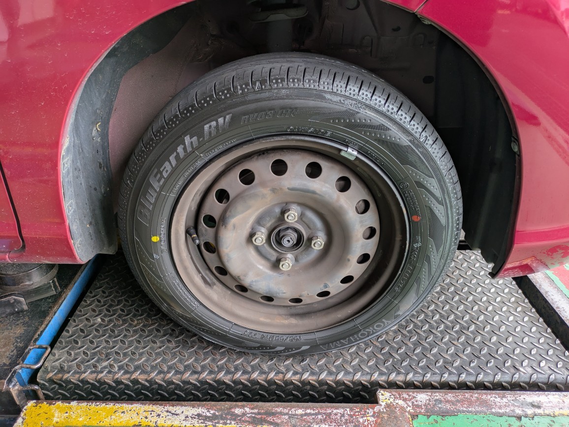 今回はタンクに165/65R14(ブルーアースRV03CK)を装着しました!(^^)!