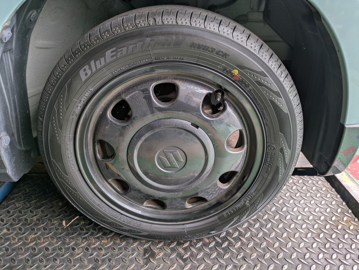 今回はスペーシアに155/65R14(ブルーアースRV03CK )を装着しました!(^^)!