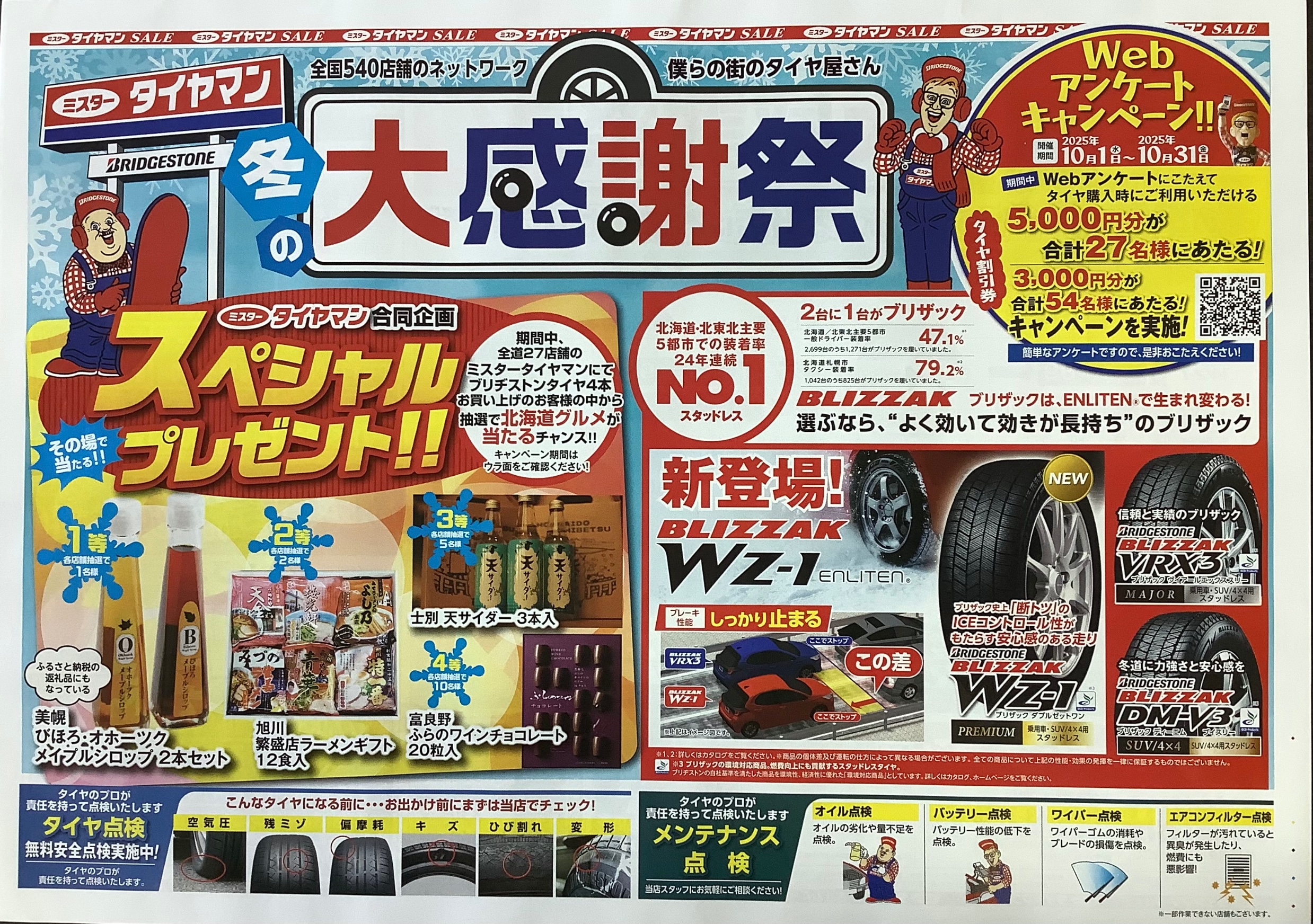 ミスタ-タイヤマン冬の大感謝祭を開催します!