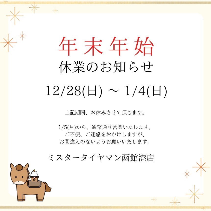 2025年度年末・2026年度年始及び1月の営業のご案内!