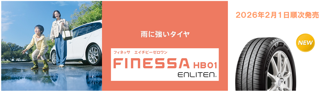 乗用車向けの新ブランド 「FINESSA(フィネッサ)HB01が2026年2月1日より順次発売されます! エコピアと同等の環境性能を維持し、雨天時の走行性能や静粛性をより高めたサマータイヤとなっております サイズは14~19インチまで 全55サイズ