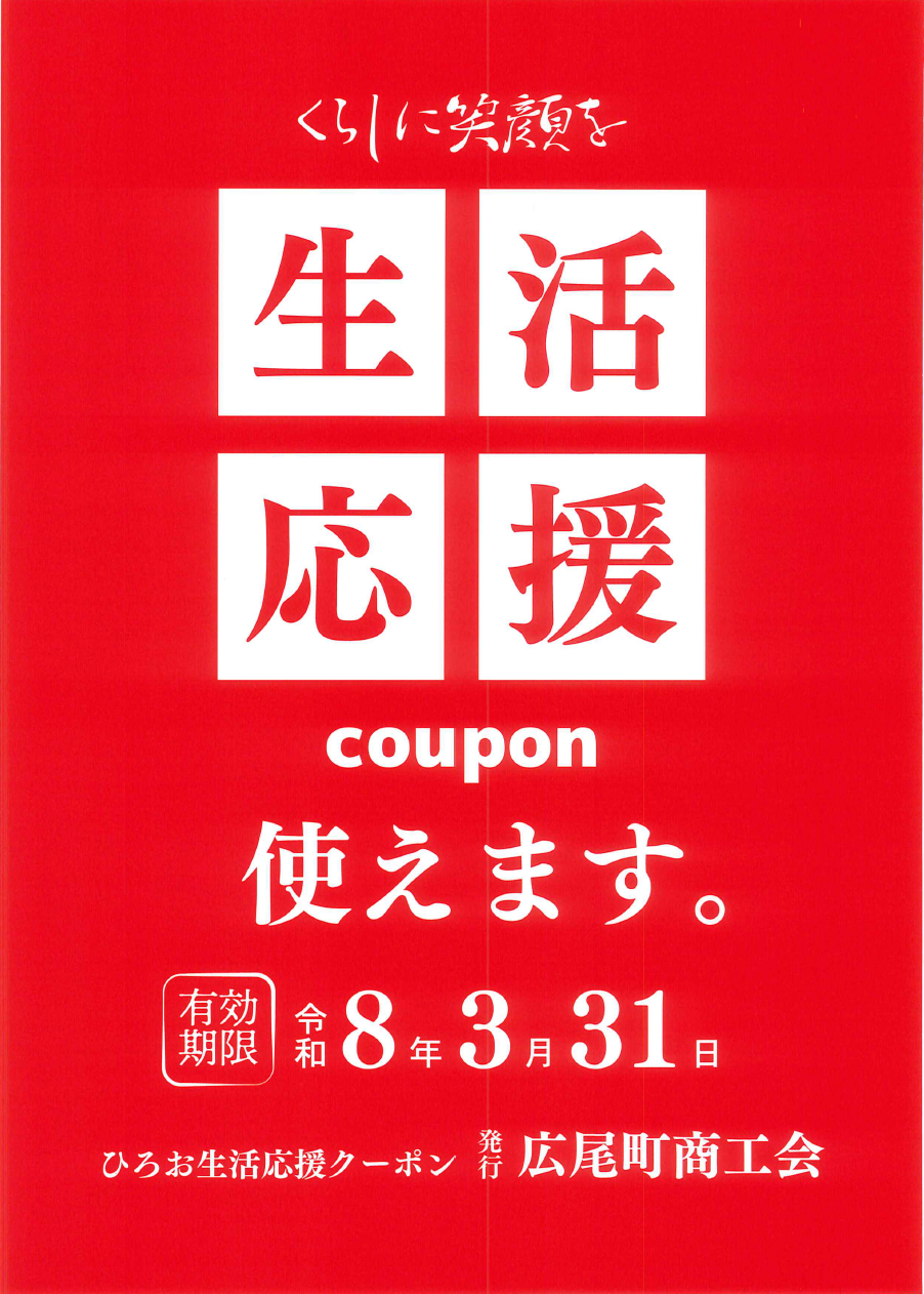 いつもミスタータイヤマン広尾店を ご利用いただきありがとうございます! 物価高騰などの影響による 町民の経済負担の軽減および 地域経済の消費喚起を目的に 「ひろお生活応援クーポン券」が 町民に発行されます!! 当店は「ひろお生活応援クーポン券」の 取扱店でございます!! 利用期間:2月1...