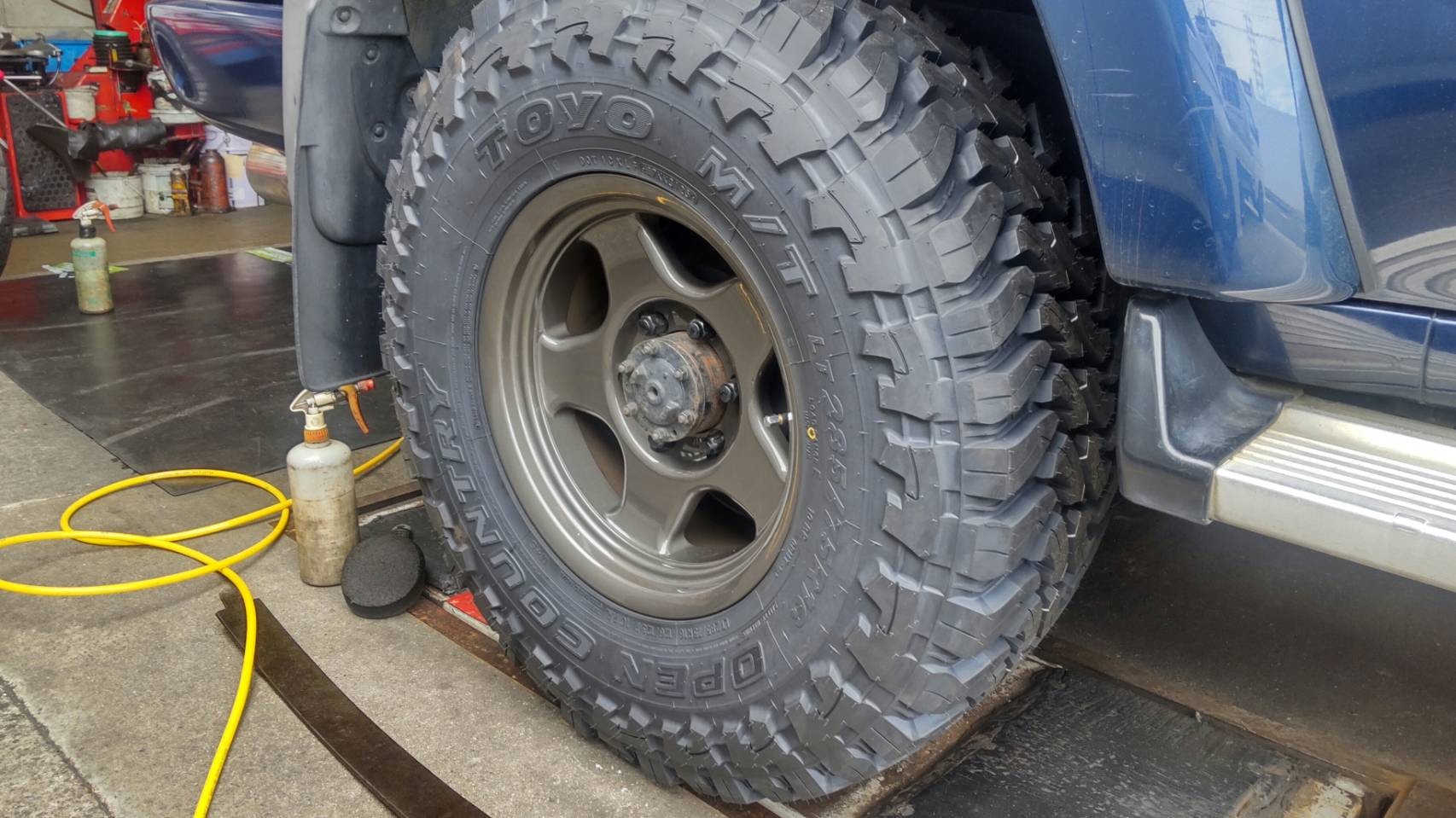 ラングラージープのタイヤ交換しました。 スタッフ日記みてね~。