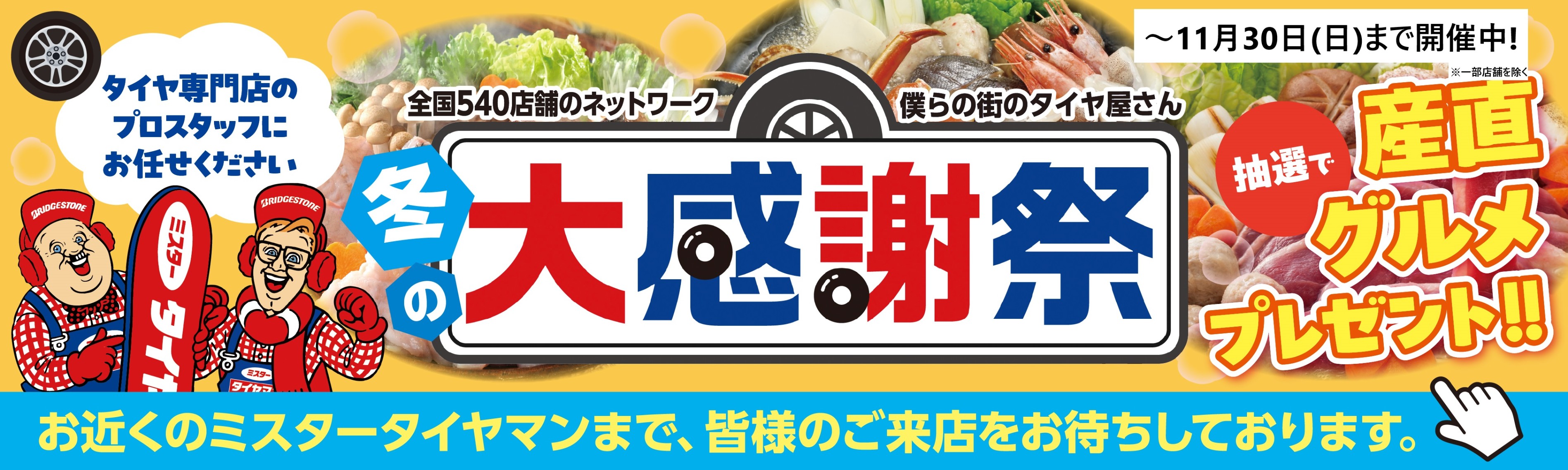冬の大感謝祭は11月30日(日)まで! 2025年11月18日 みなさま、いつも当サイトをご覧いただきありがとうございます。 本日から今季初の寒波の到来とニュースで発信されていますね! さて、11月1日から開催しております冬の大感謝祭も残すところ2週間となりました。 まだ、ご来店されていない方はお急ぎください!