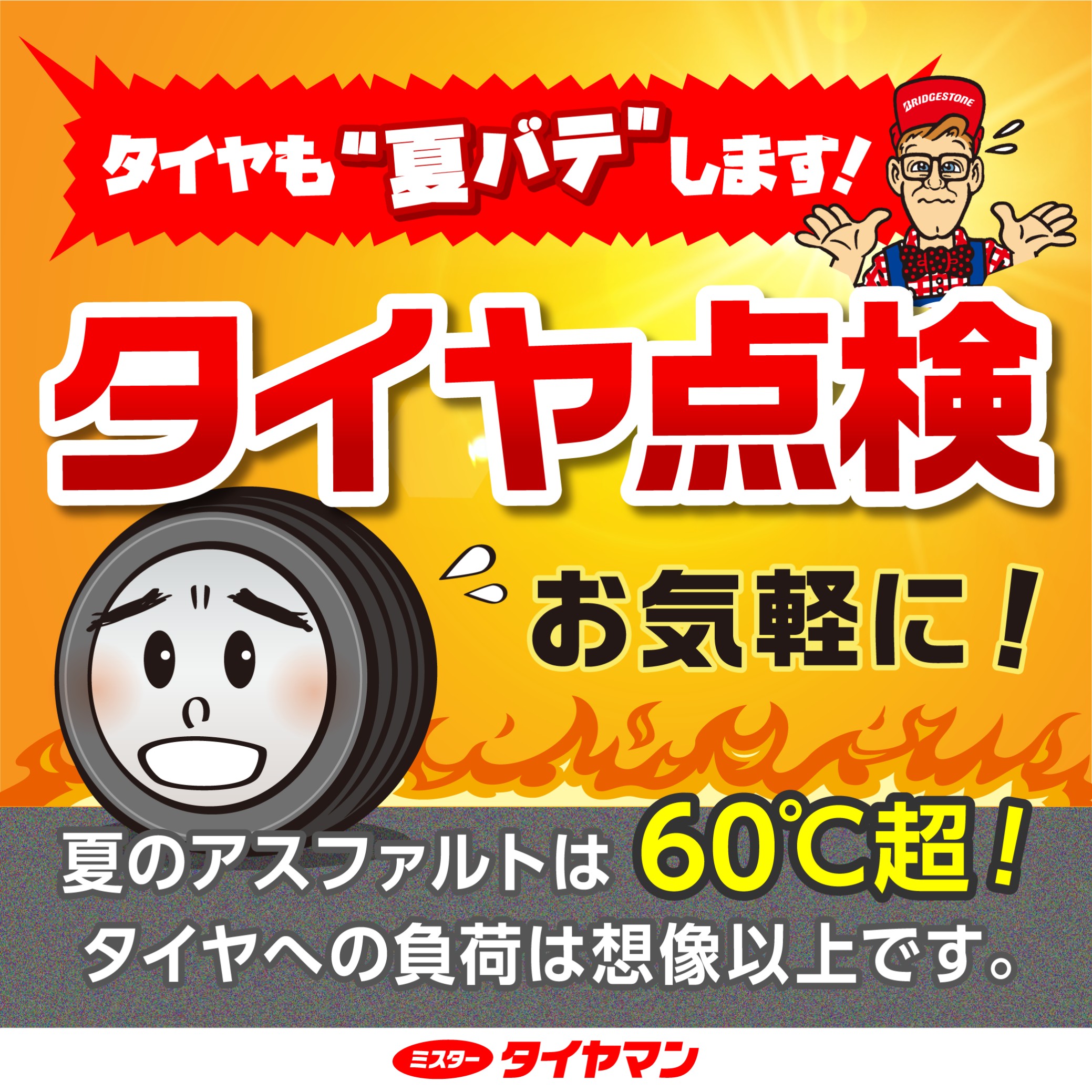 ミスタータイヤマンならタイヤの夏バテ点検はもちろん!!