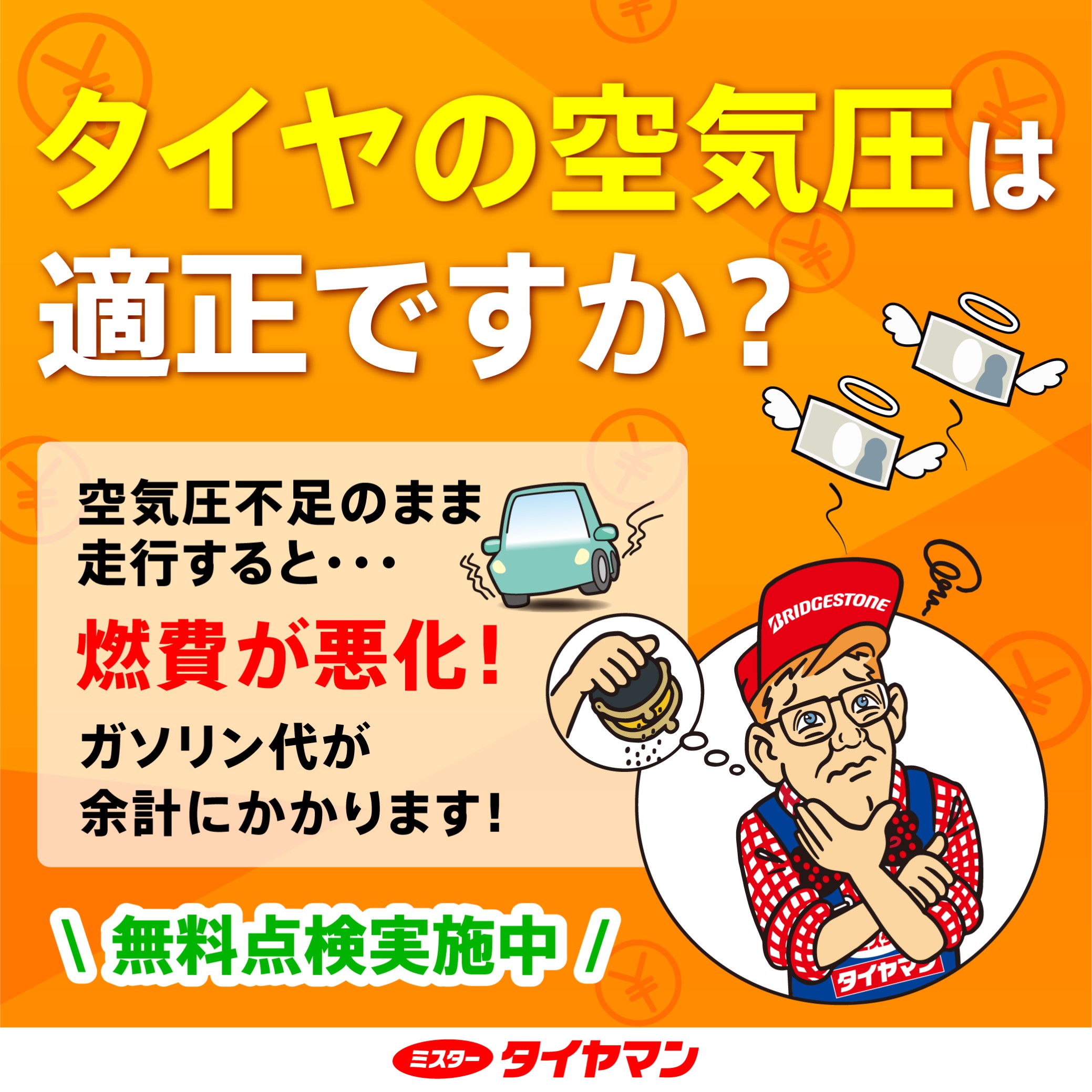ミスタータイヤマンの無料安全点検をご利用ください。
