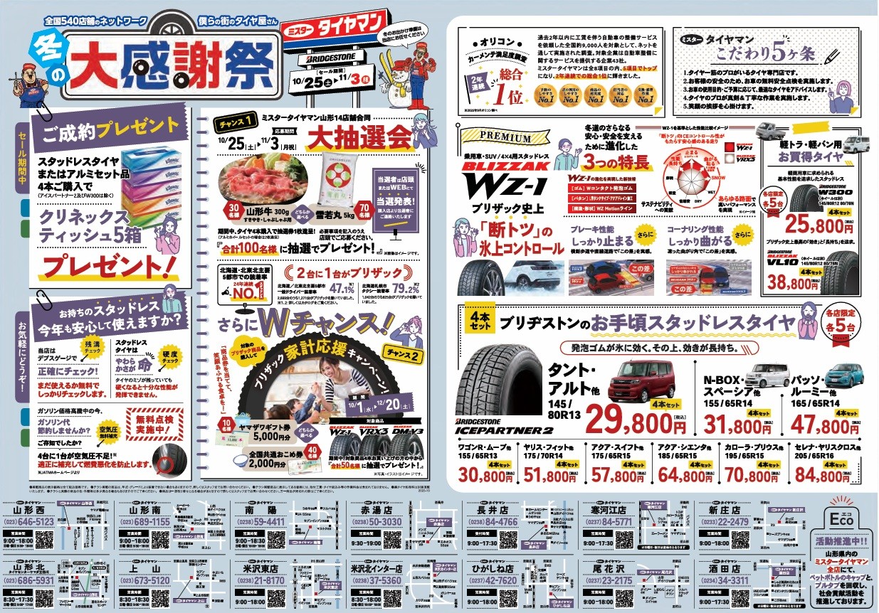 2025年10月16日 ミスタータイヤマン 米沢東店 10月25日(土)から!冬の大感謝祭開催です‼