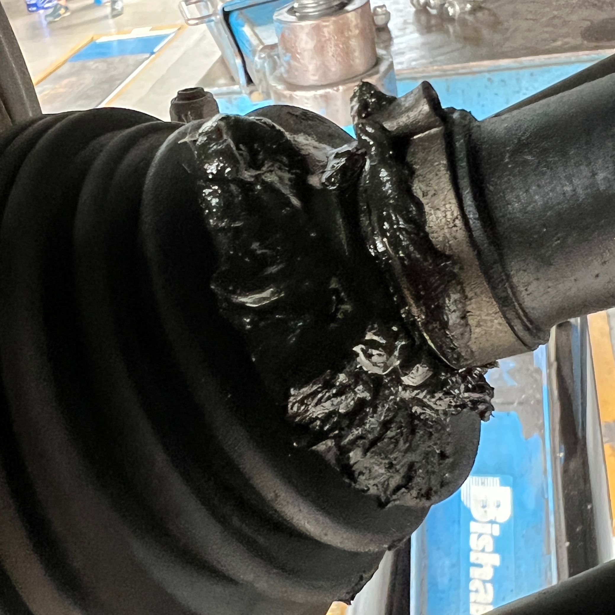 もちろんこれでは車検は合格できませんし、グリスが無くなって走ってしまうと、中のボールジョイントが痩せてガタが出る恐れがあります(>_<)