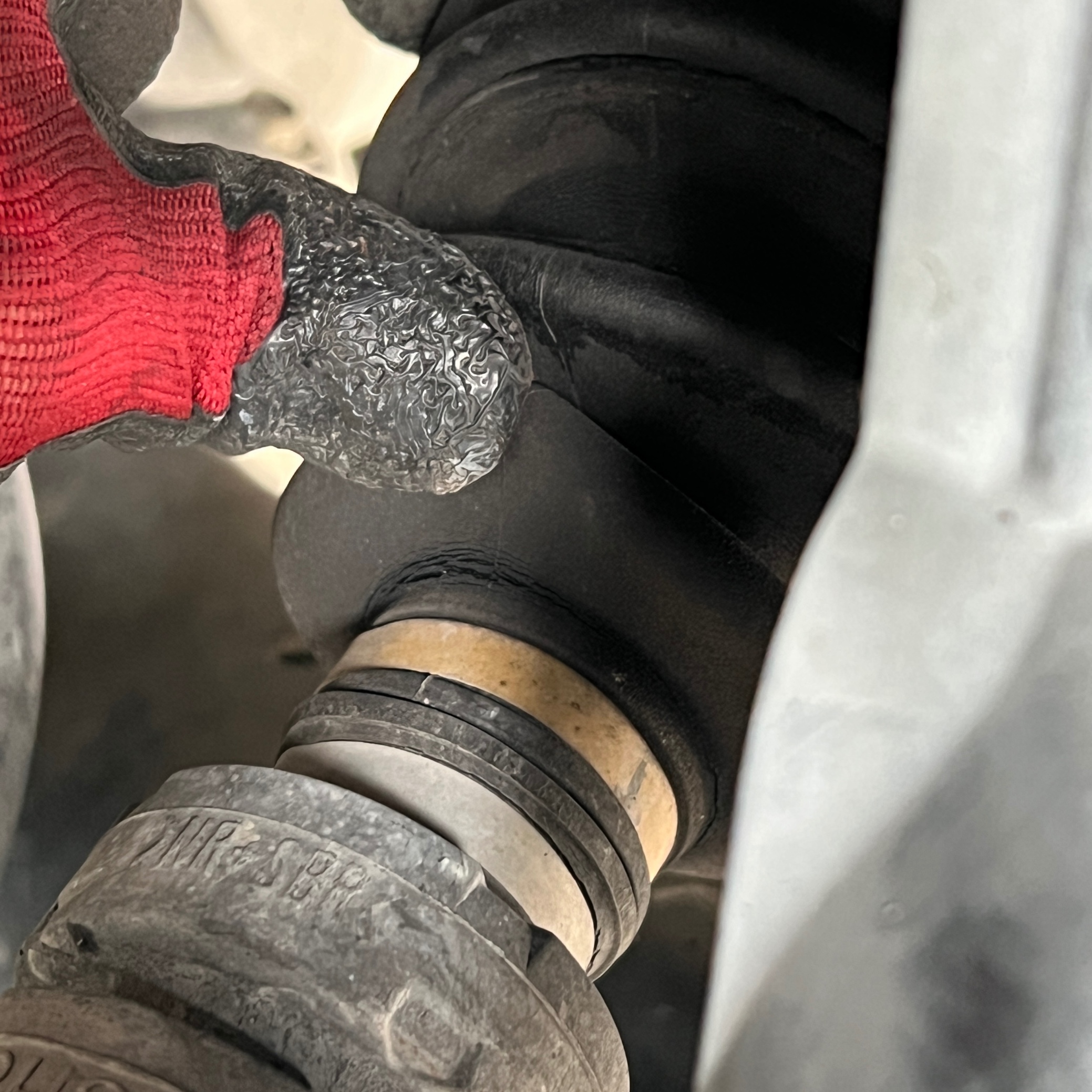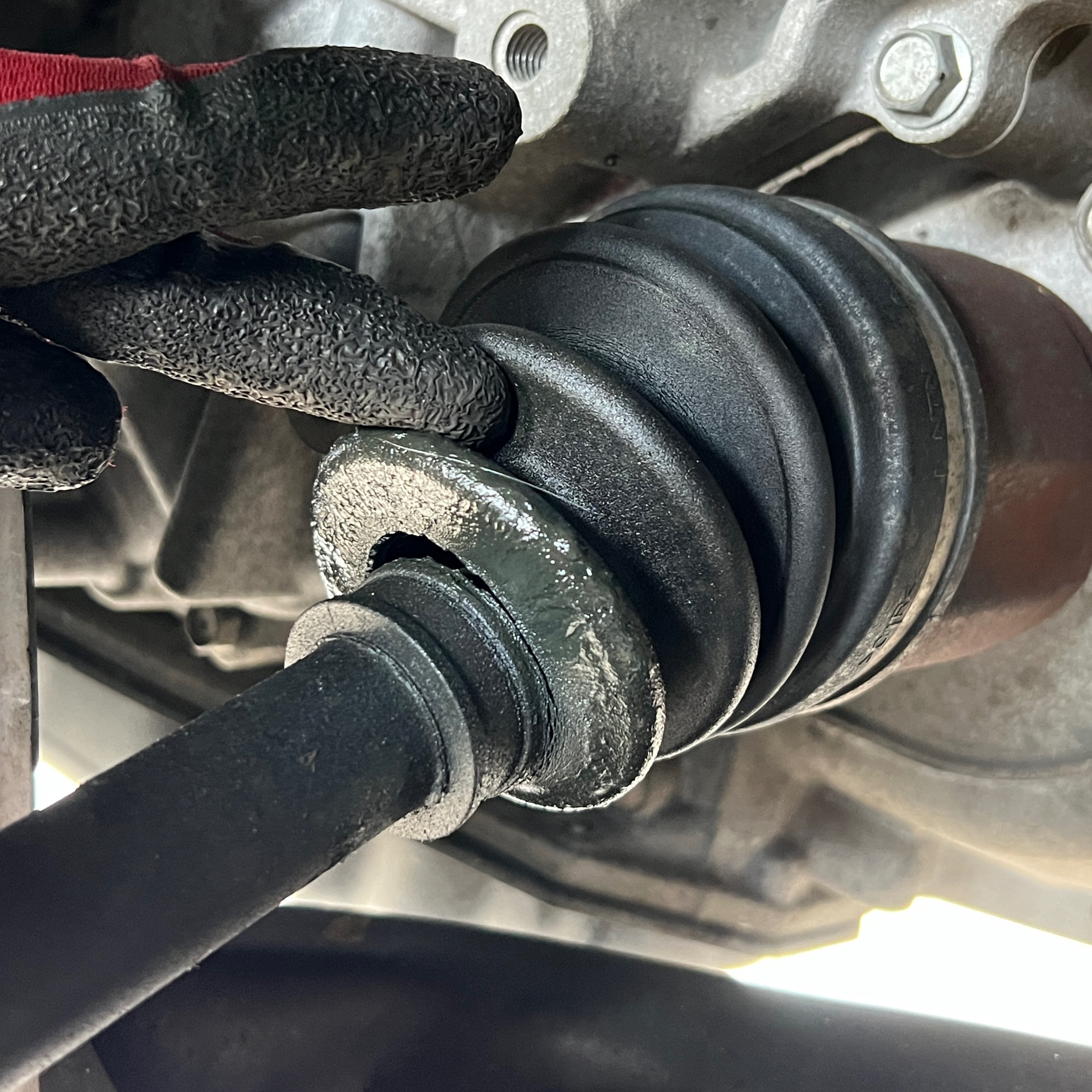 フロント右中ドライブシャフトブーツ もちぎれかかっていました。