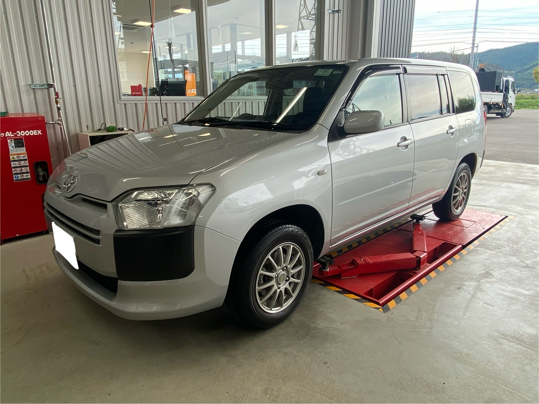 本日は当店社有車のサクシードが車検から戻ってきたので、タイヤ交換を行いました。