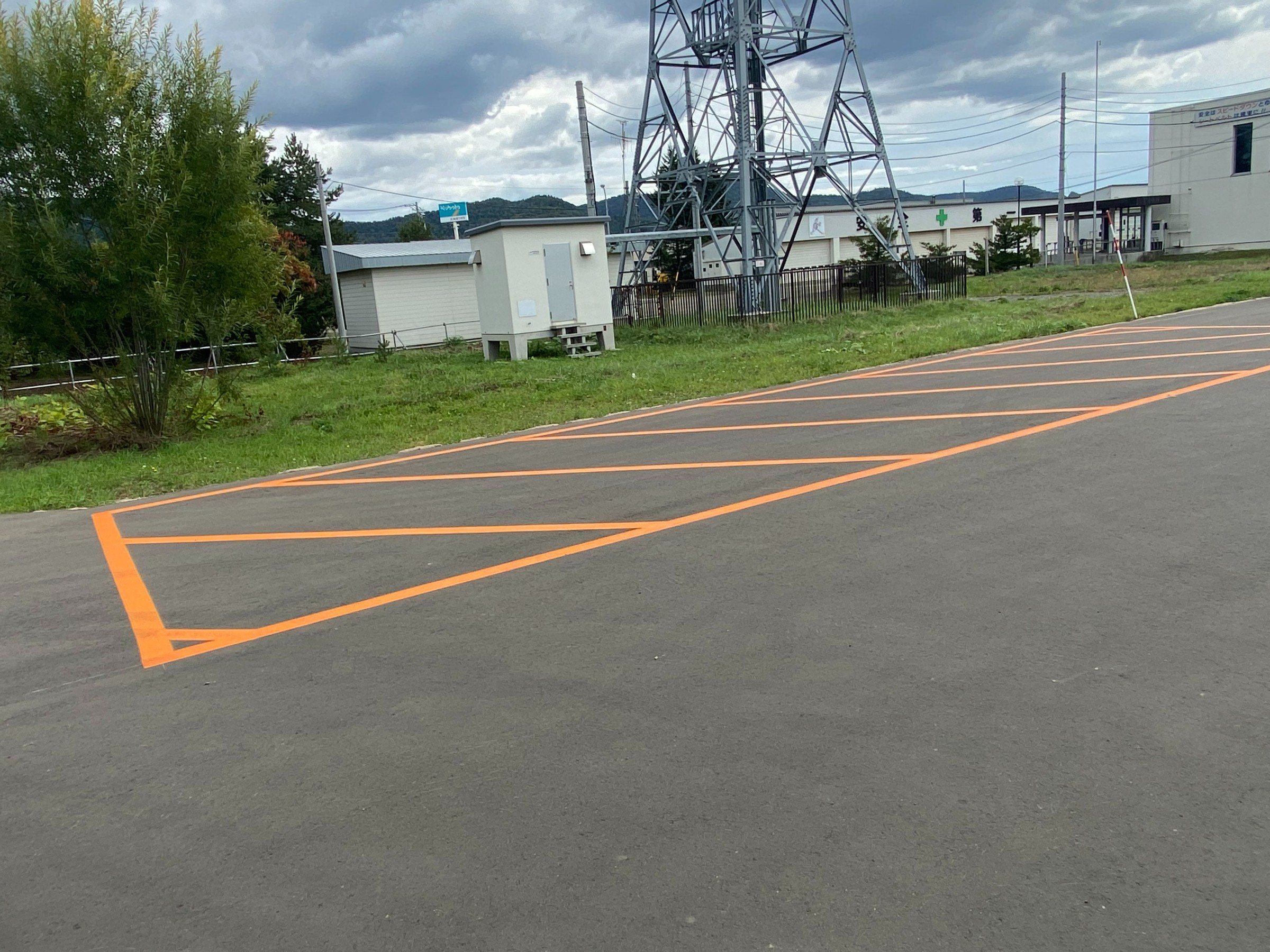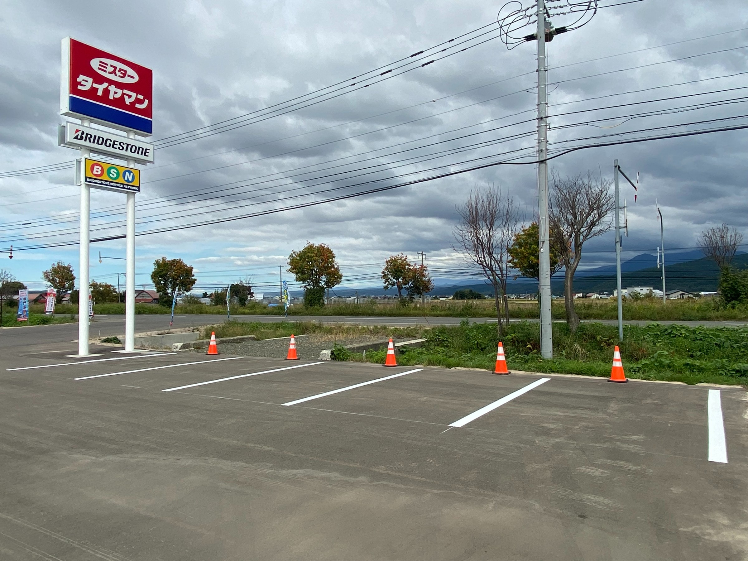 富良野店が1月に移転してきて9ヶ月が経ち、ようやくお客様用の駐車場のライン引きが完了いたしました。