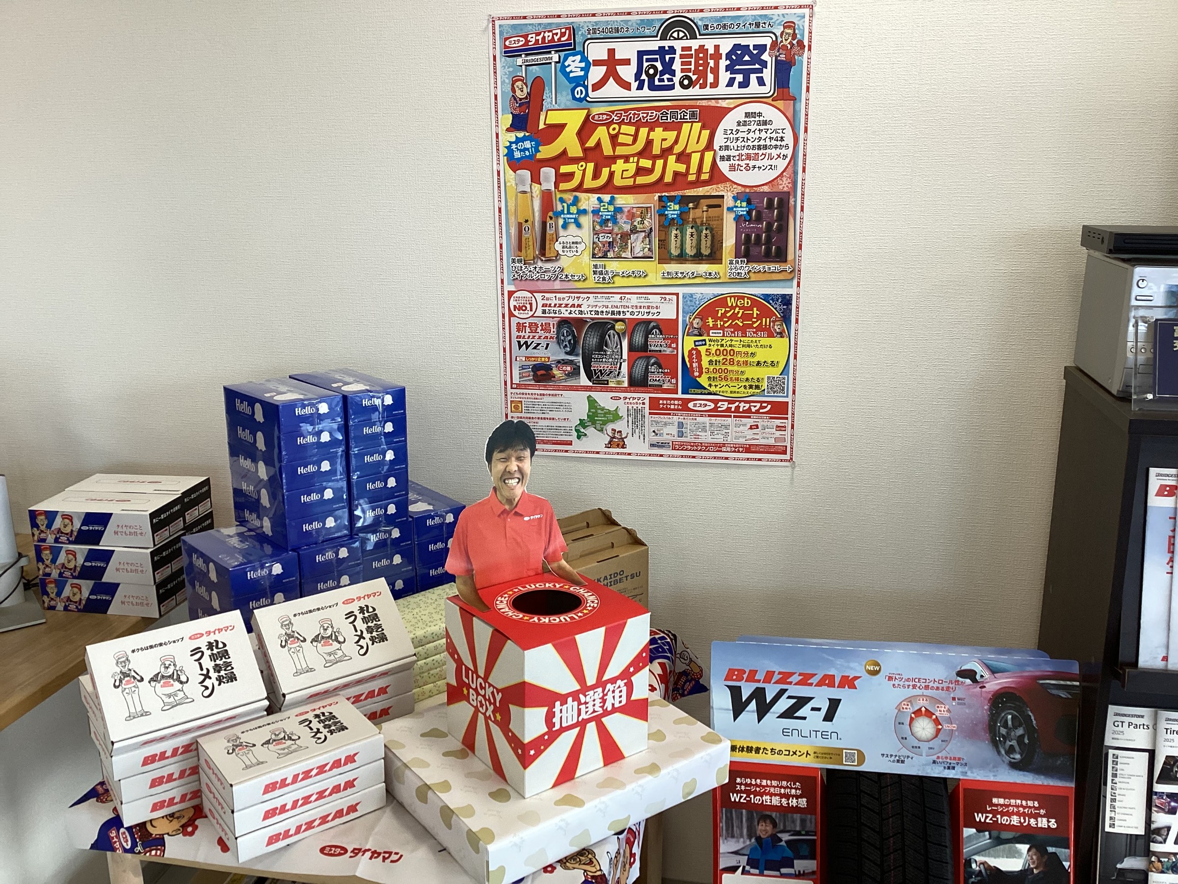 タイヤ4本ご購入で道北地区のグルメ商品が当たる抽選会もしております!