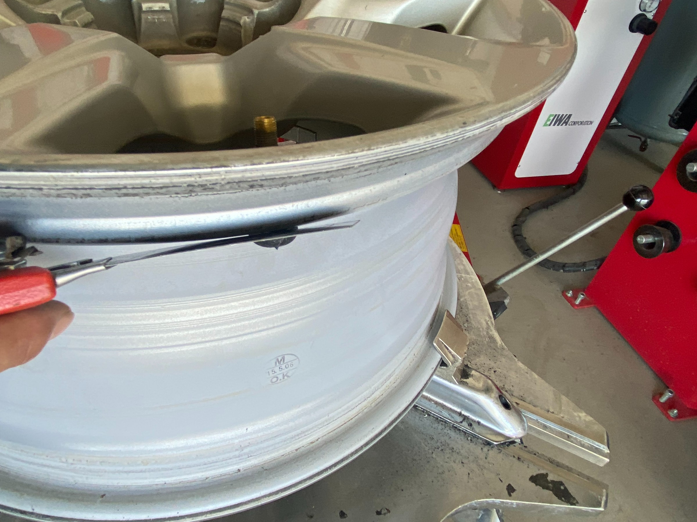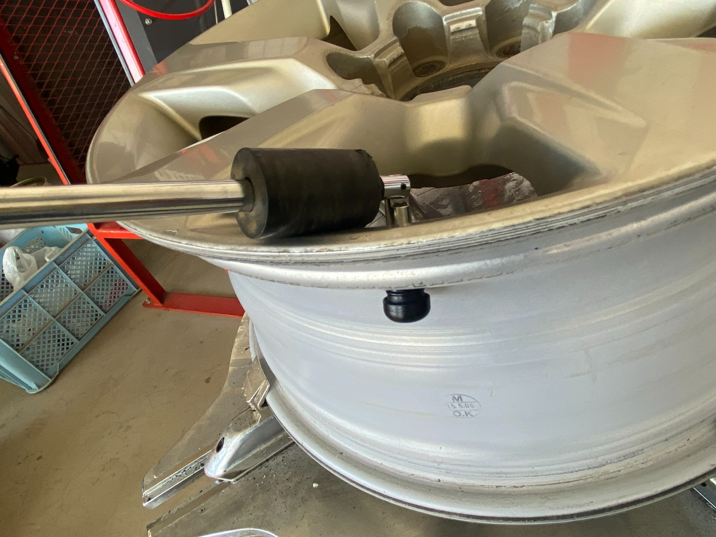 次にターンテーブルへセットしホイールを傷つけないようにタイヤとホイールをばらしていきます。