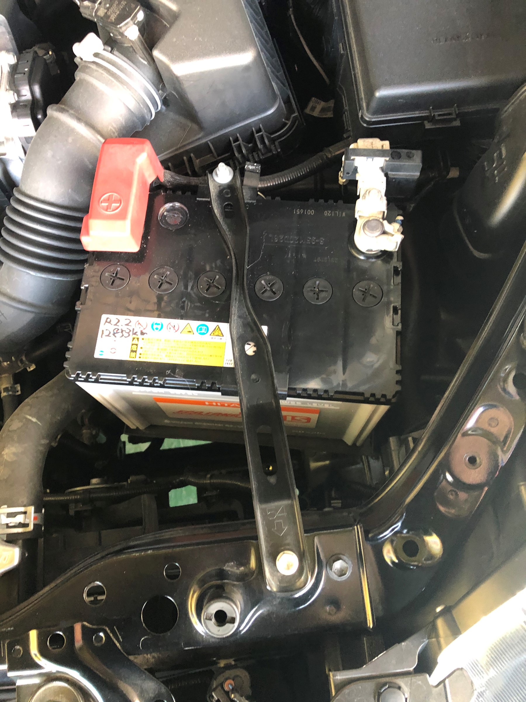 固定用のステーを取り外して、バッテリーターミナルを取り外すという
