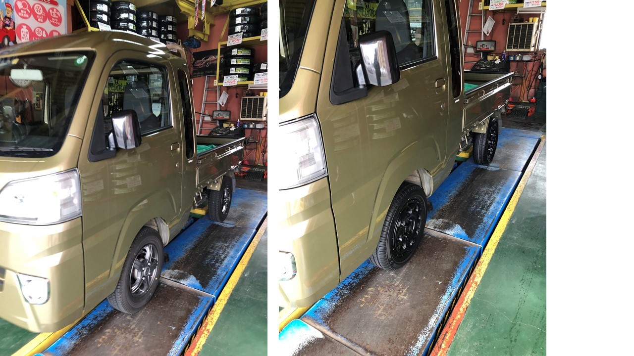 13インチのタイヤ&ホイール セットのお取り付けです(^^)/