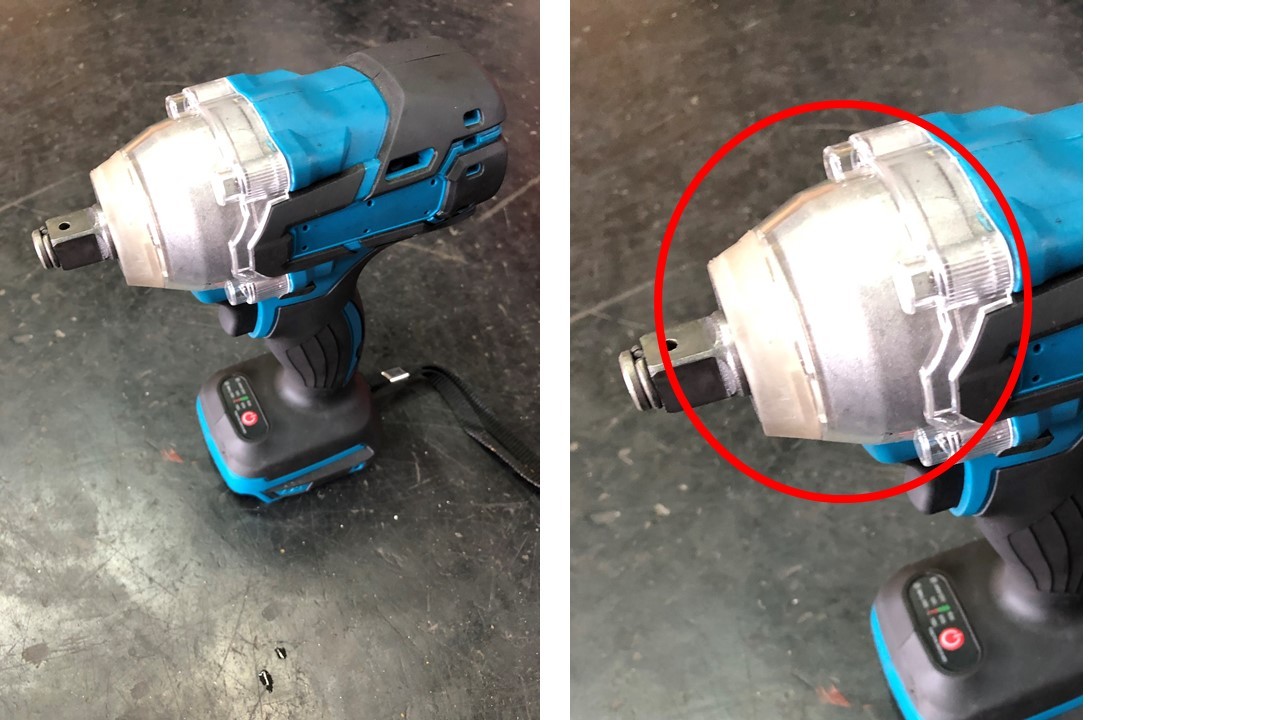 赤丸の中のゴムカバー、透明のプラスチックカバーが振動で簡単に外れ、