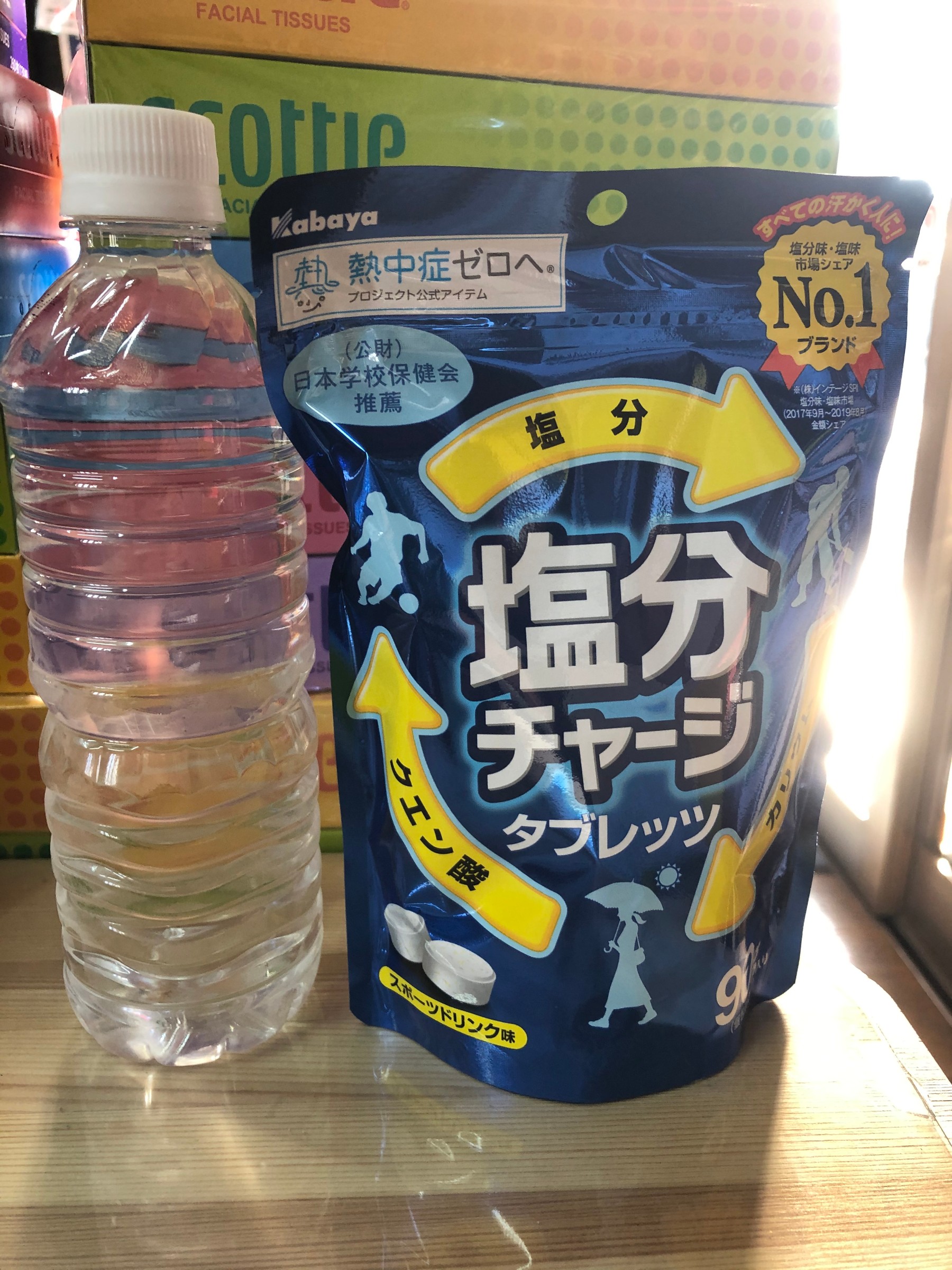 熱中症にならないように、塩分チャージのタブレットを舐めながら、