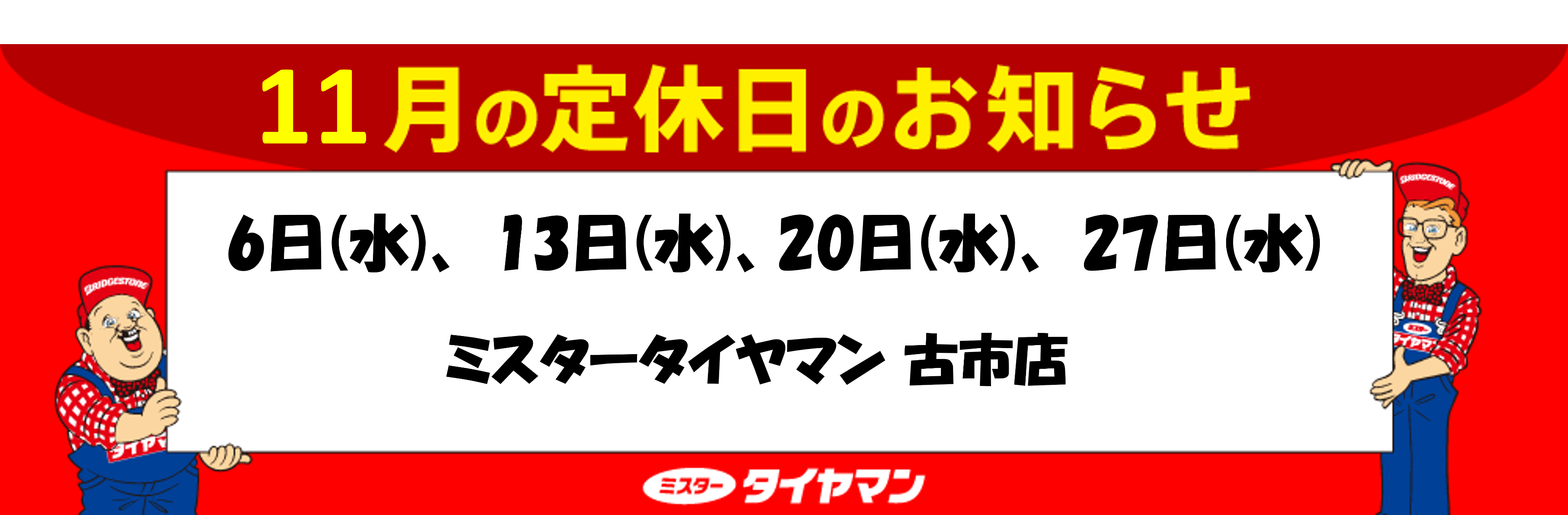 2024年11月の定休日のお知らせ(^^♪ 2024年10月25日 当店HPをご覧いただきありがとうございます(^^)/ 2024年11月の定休日のお知らせです(^^♪ 通常通り、毎週水曜日が定休日となります<m(__)m> 営業時間は、AM9:30~PM7:00 作業の最終受付時刻はPM6:30となります。