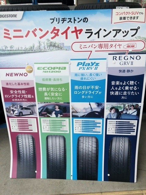 NEWNOからREGNOまで様々な種類がありますがタイヤの性能は全然異なるのでどういった感じで運転がしたいかでタイヤももちろん変わります!