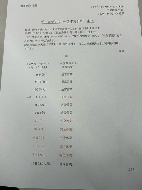 5月にはいってまた改めて報告させていただく予定ですが早めにお知らせさせて頂きます。