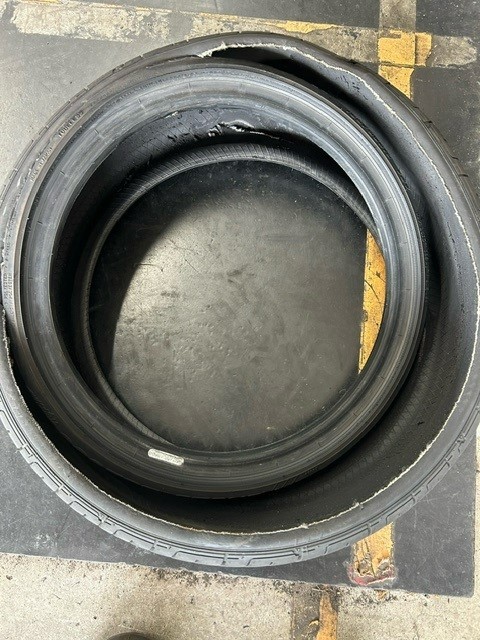 気づかないうちに何かを踏んでしまって気づいたときには手遅れとなり写真のタイヤのようになってしまうといったことがかなり増えてきています!