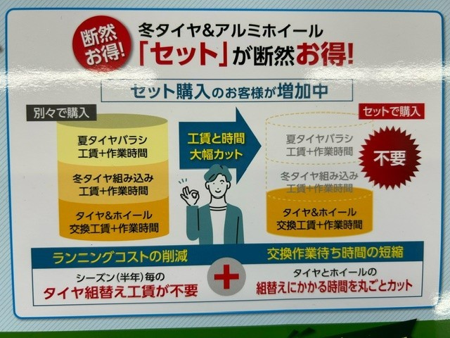 最初にスタッドレスタイヤ用のホイールも一度に買っていただくことで今後がかなりスムーズになります!