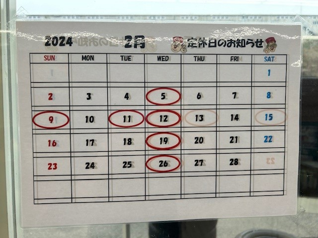 今月はいつもの休みに加えて11日もお休みとなっております。