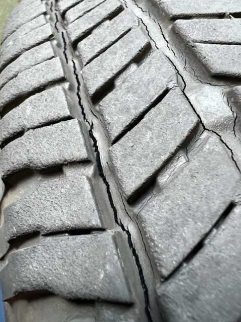 写真は先日当店でタイヤ点検されて、ひび割れが見つかったお客様のタイヤです。