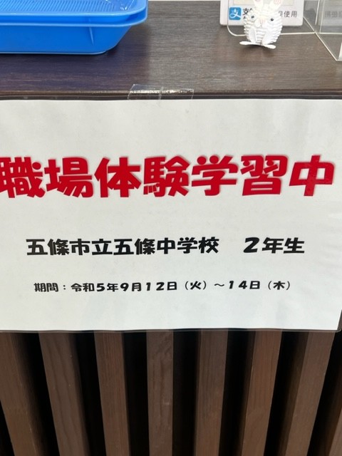 9月12日から3日間、近くの中学校から2人の2年生の男子を職場体験学習でお預かりしておりました。