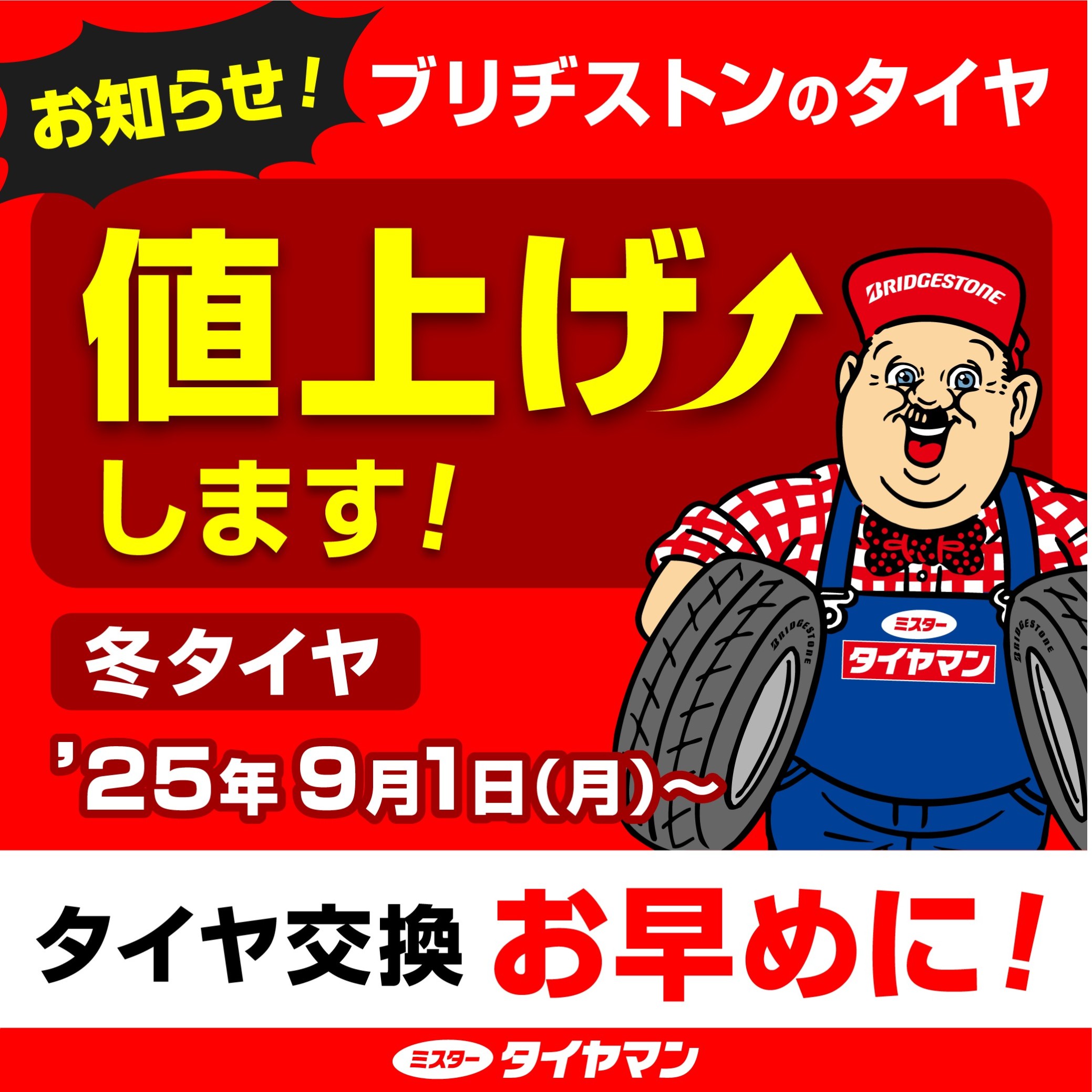 さて、ブリヂストンの冬タイヤが、2025年9月1日より値上げされることになりました。