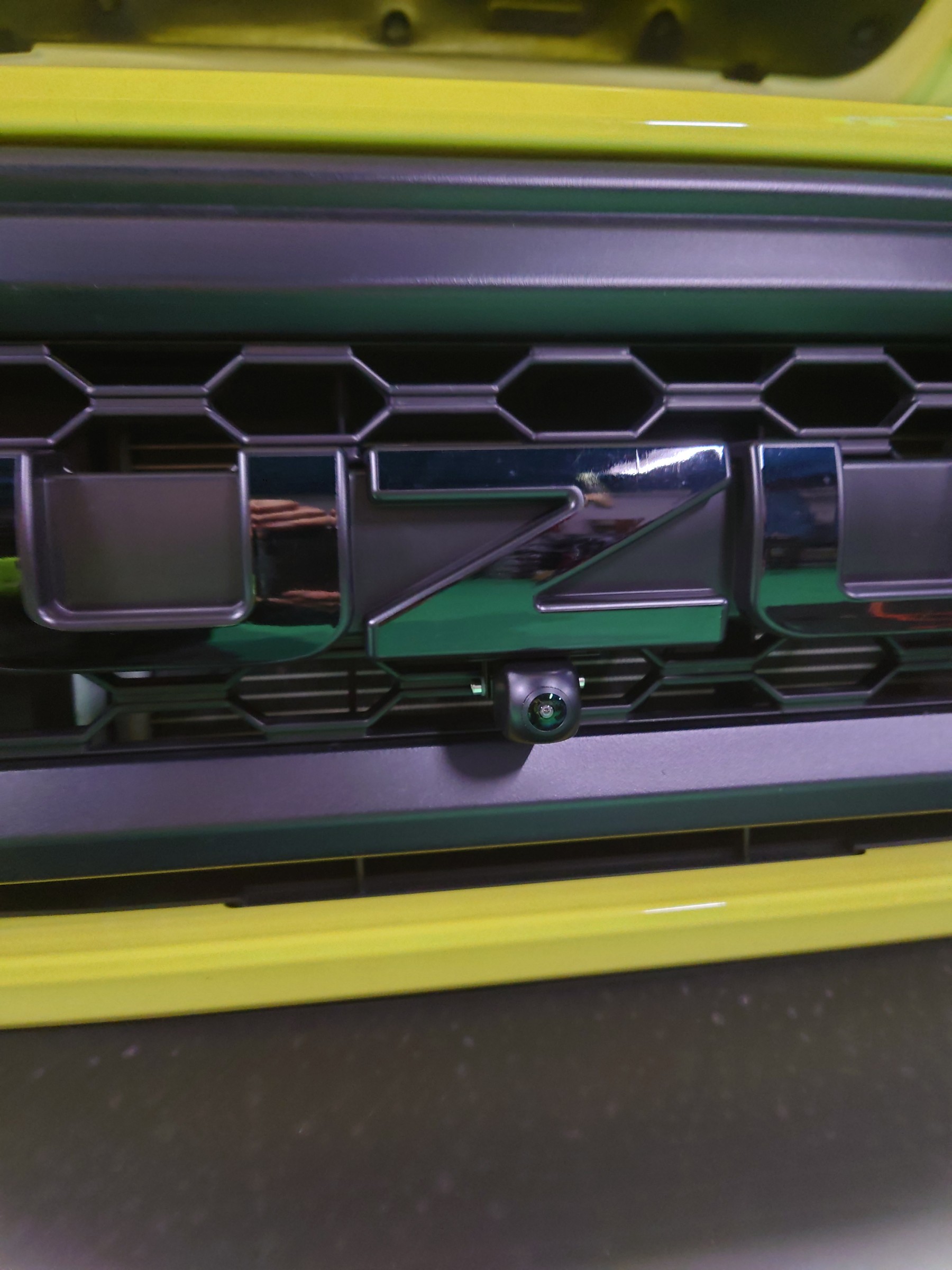取付したマルチビューカメラは小型でデザイン面の邪魔にならず、フロントまわりの印象を崩さない点が◎