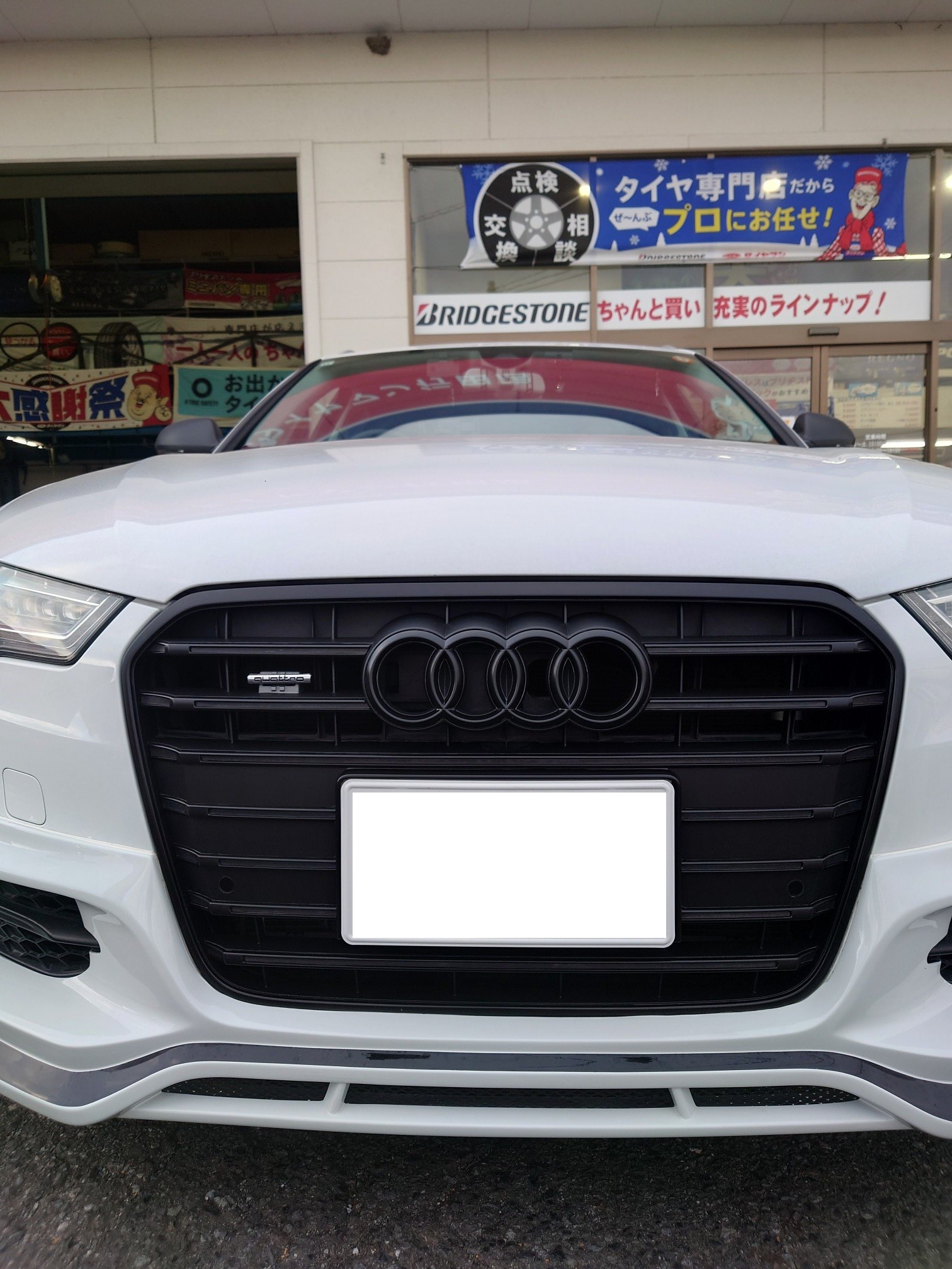 本日はアウディA6にお乗りのお客様よりフロントグリルブラックアウト加工(フィルムラップ施工)リアエンブレムブラック加工(マッドブラック塗装)のご注文をいただきました。
