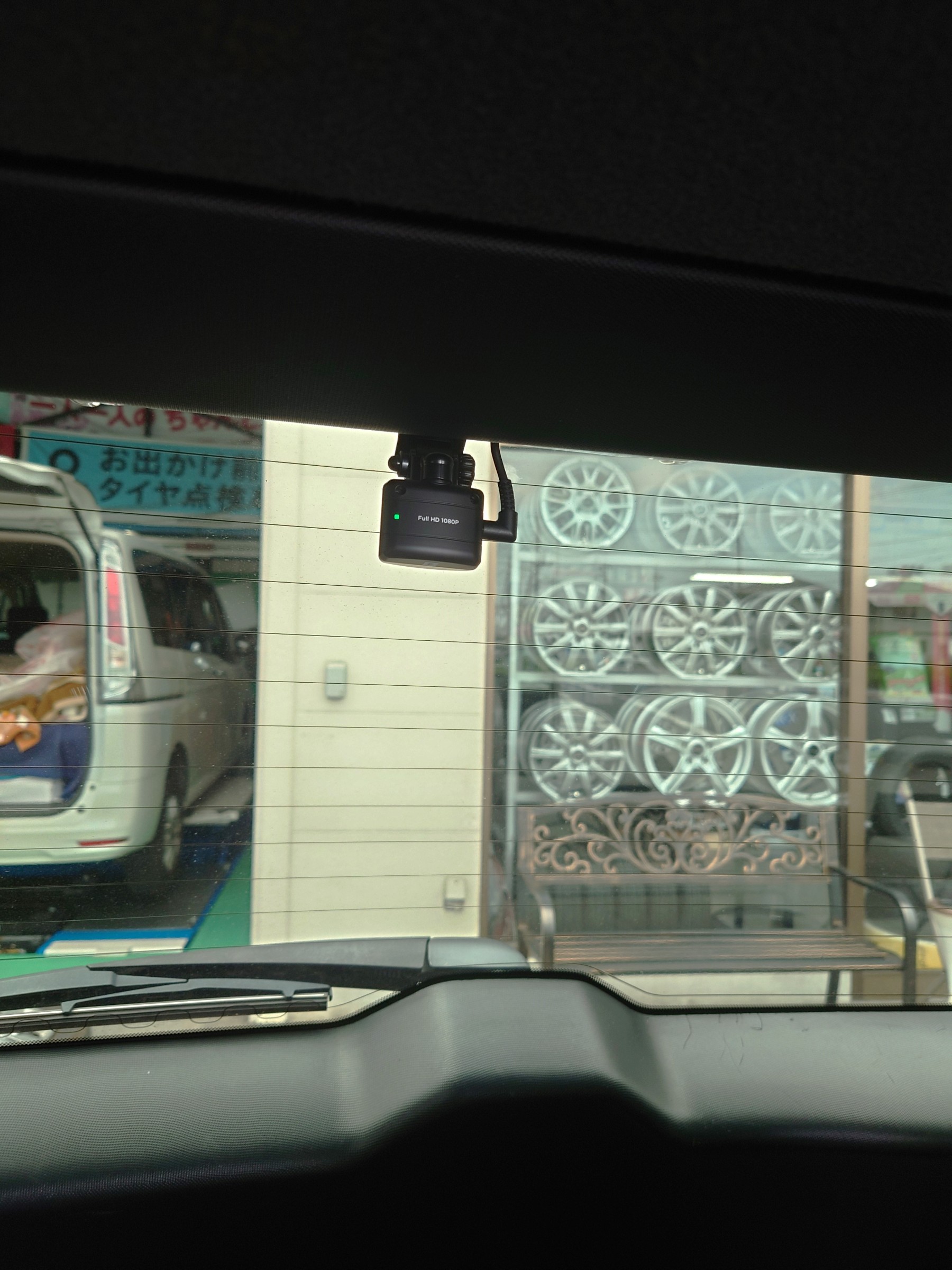 フロントはルームミラー付近、助手席側が視界に干渉せず安定。
